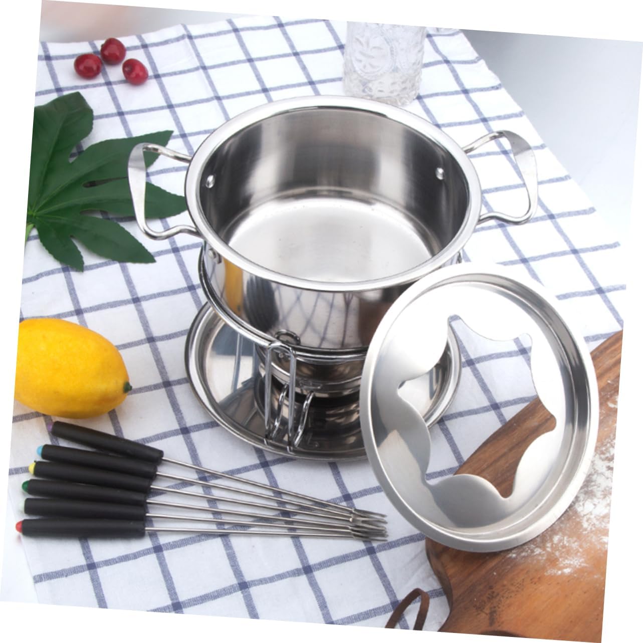 Package Include 6 x color coded forks 1 x pot 1 x spill plate 1 x stainless steel stand 1 x gel burner Features - Material: Stainless steel pot for chocolate melting. - Package Size: 25x20x20cm meltable chocolate. - ColorSilver chocolate fondue kit - Gel burner and cover are easily in your reach while you cook fondue chocolate melting chocolate. - stainless steel construction provides even heating and optimal heat retention. Whether serving a broth, cheese, or chocolate fondue, the temperature and consistency will be just right cheese fondue set. - A stainless splatter guard protects around the pot for no and features slots to hold the 6 color-coded stainless forks melting pot fondue cheese mix. - Constructed in stainless steel for durability and reliability melting chocolate pot. - This fondue set is in any setting for anyone experienced or novice cheese fondue sets.Goods Descriptioncheese fondue When you know a special someone, who can't seem to get enough cheese, or chocolate this is for them.melting pot fondue cheese mix What buy for someone a or cheese lover? Simple, this cheese/chocolate fondue melting kit is the choice.cheese fondue pot Whether it's a dinner party, birthday party, bridal shower or anniversary, these fondue set will be your go presenting any types of food servings.chocolate melt Besides, this fondue kit is for tableside service, buffets, and party tables