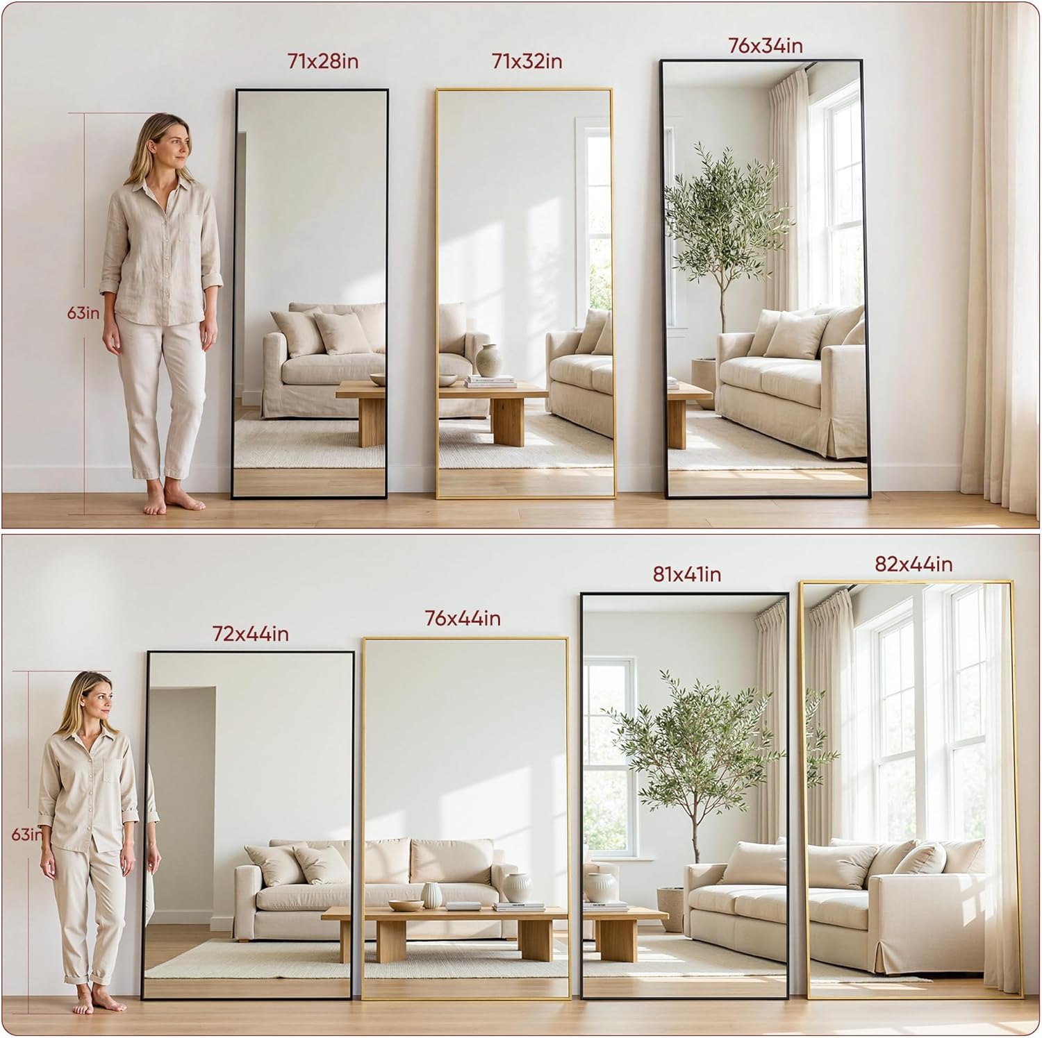 Suidia Full Length Mirror, 71"x32" Floor Mirror Freestanding, Rectangular Full Body Mirrors with Stand for Bedroom, Hanging Mounted for Living Room Cloakroom, Black
