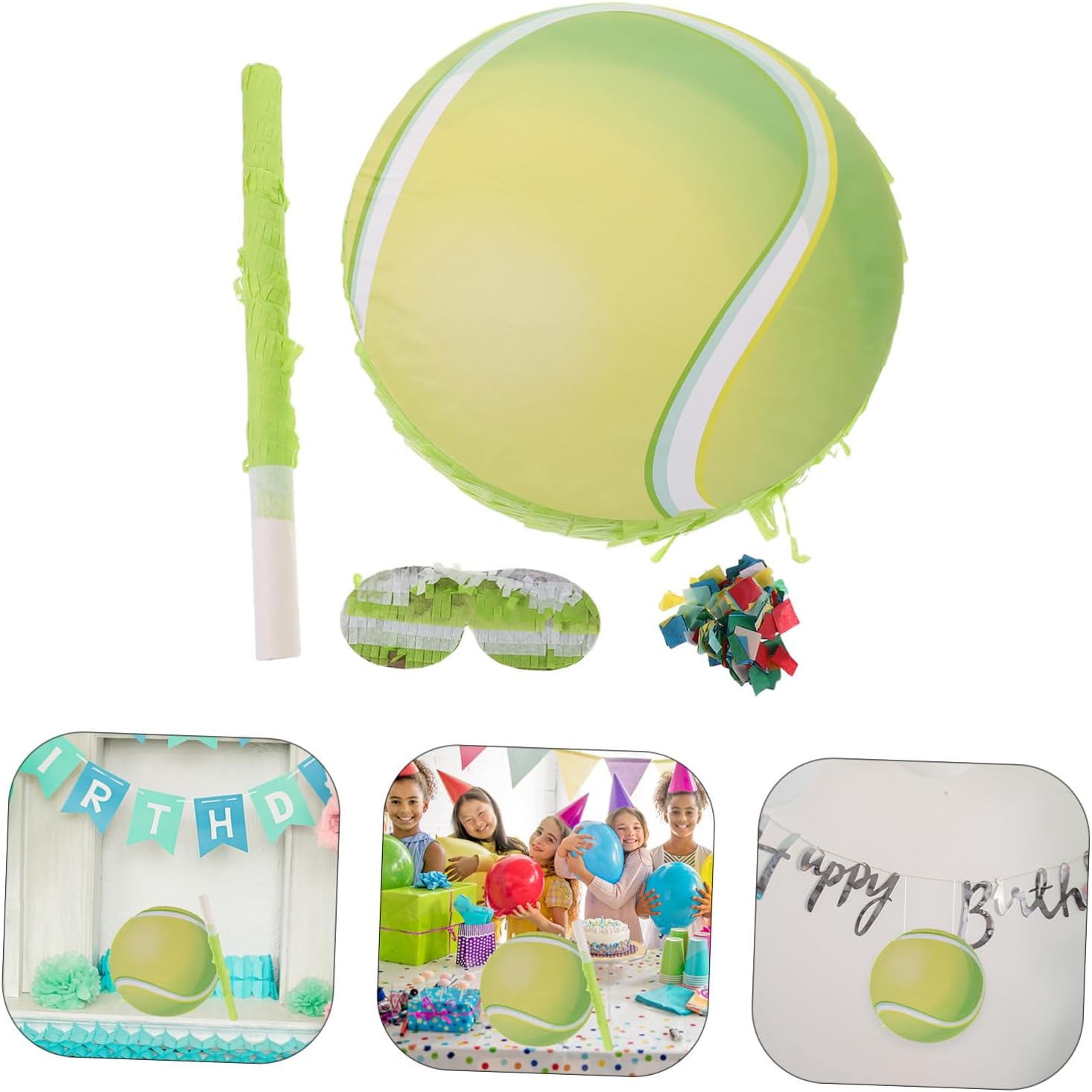 Package List 1 x Pinata 1 x strike stick 1 x eye mask 1 x set of confettis Characteristics -Size:39.00X2.50X2.50cm/15.33X0.98X0.98in blindfold funny pinata games - material: rest assured with stable build quality in this sports pinata , designed to endure multiple swings and hits in demanding tennis themed party favors environments tennis theme pinata -Interactive party games: engage with classic party games for and blindfold funny pinata games, using this tennis themed party supplies to spark excitement and happy competition tennis pinata -Size:32.00X32.00X7.50cm/12.58X12.58X2.95in blindfold birthday party pinata -Fresh play experience: elevate birthday celebrations with innovative pinata stuffer sport, combining tradition with the thrill of tennis pinata filler games for modern tennis birthday party events party pinata -Note: The confettis are random color tennis party supplies -Material:Paper tennis party pinata -Product Info:Tennis Pinata -Color:Assorted Color sports theme party decoration -Size:17.00X5.80X0.10cm/6.68X2.28X0.04in birthday pinataGoods Informationpinata party favors Energize your party with a tennis theme pinata that doubles as an engaging party game for birthday and sports themed party decorations.sports balls pinata This versatile pinata party favor encourages family and friends to join in stretching, swinging, and smashing candy with each hit, perfectly complementing tennis birthday decoration and providing hours of laughter and bonding during any sports party