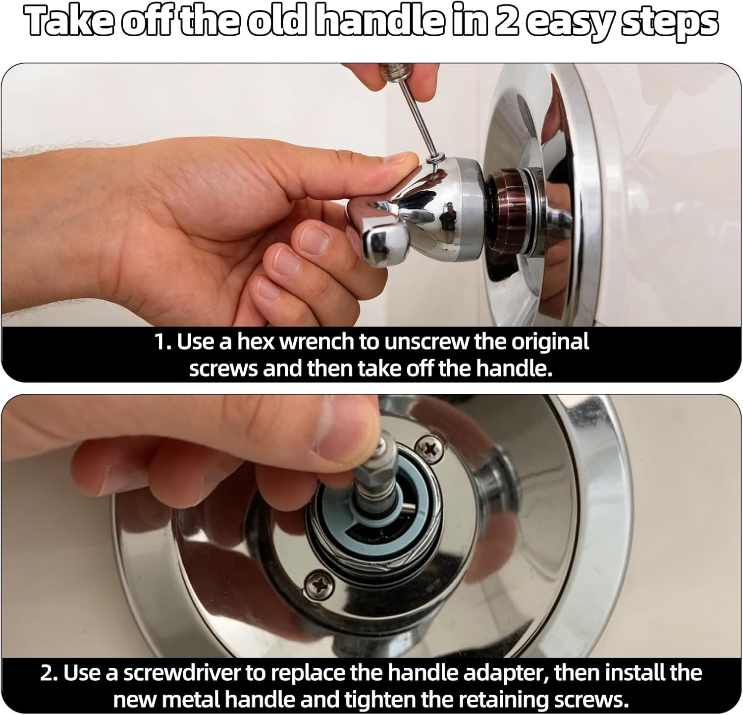 Specification: Color: silver Material: stainless steel, chromium alloy Product Size: handle: 11.7 x 6.3cm/4.6x2.5in Package details: 1 x lever handle 1 x hex wrench 1 x set screw 1 x long screw 1 x handle adapter Note: Due to manual measurement, the size and weight may have a certain error. Due to the difference between different monitors, there may be a slight color difference existed.