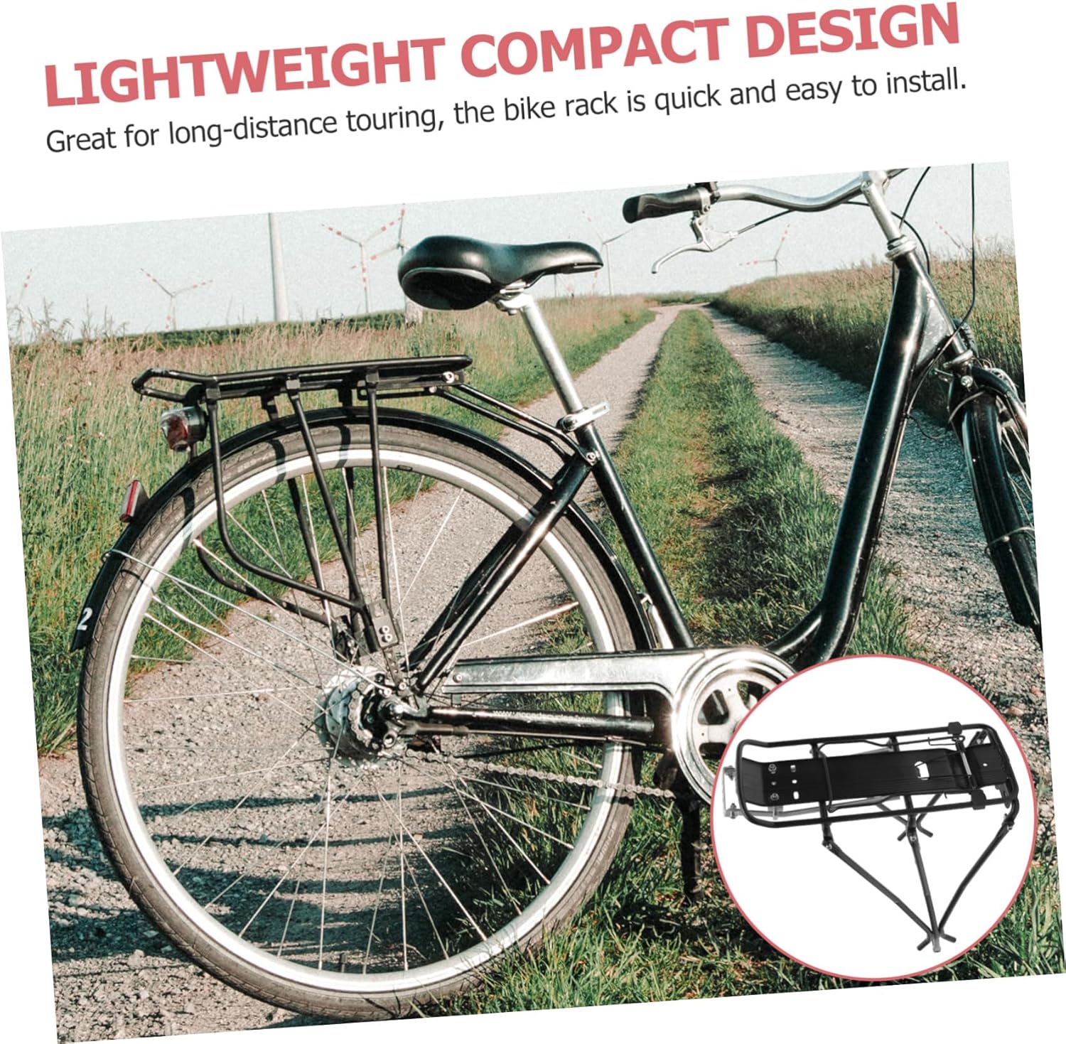 Package Include 1 x Explorer Bike Rack Carrier Rack Mountain Bike Cargo Racks Touring Carrier Characteristics - Material: Aluminum alloy explorer bike rack. - Size: Approx. 45 x 35 x 15cm/ 17.7 x 13.8 x 5.9 inch (LxWxH). - Color: Black. - Lightweight compact design for easy transportation bike rear rack. carrier rack - Movable and fixed rack, to use for suitcases, backpacks, baskets so that you can carry lots of things with you and make a convenient short trip bike cargo racks. bike carrier rack - Suitable for most bikes, especially for road bike and mountain bike. - with makes it strong and durable. - Great for long-distance touring, the bike rack is to install.Goods Descriptionbike cargo racks With alluminum alloy made, the rack is strong and durable.explorer bike is to use for suitcases, backpacks, baskets so that you can carry lots of things with you and make a convenient short trip.bike carrier is suitable for most bikes, especially for road bike and mountain bike.bike rear rack This item is manufactured with for durable and use
