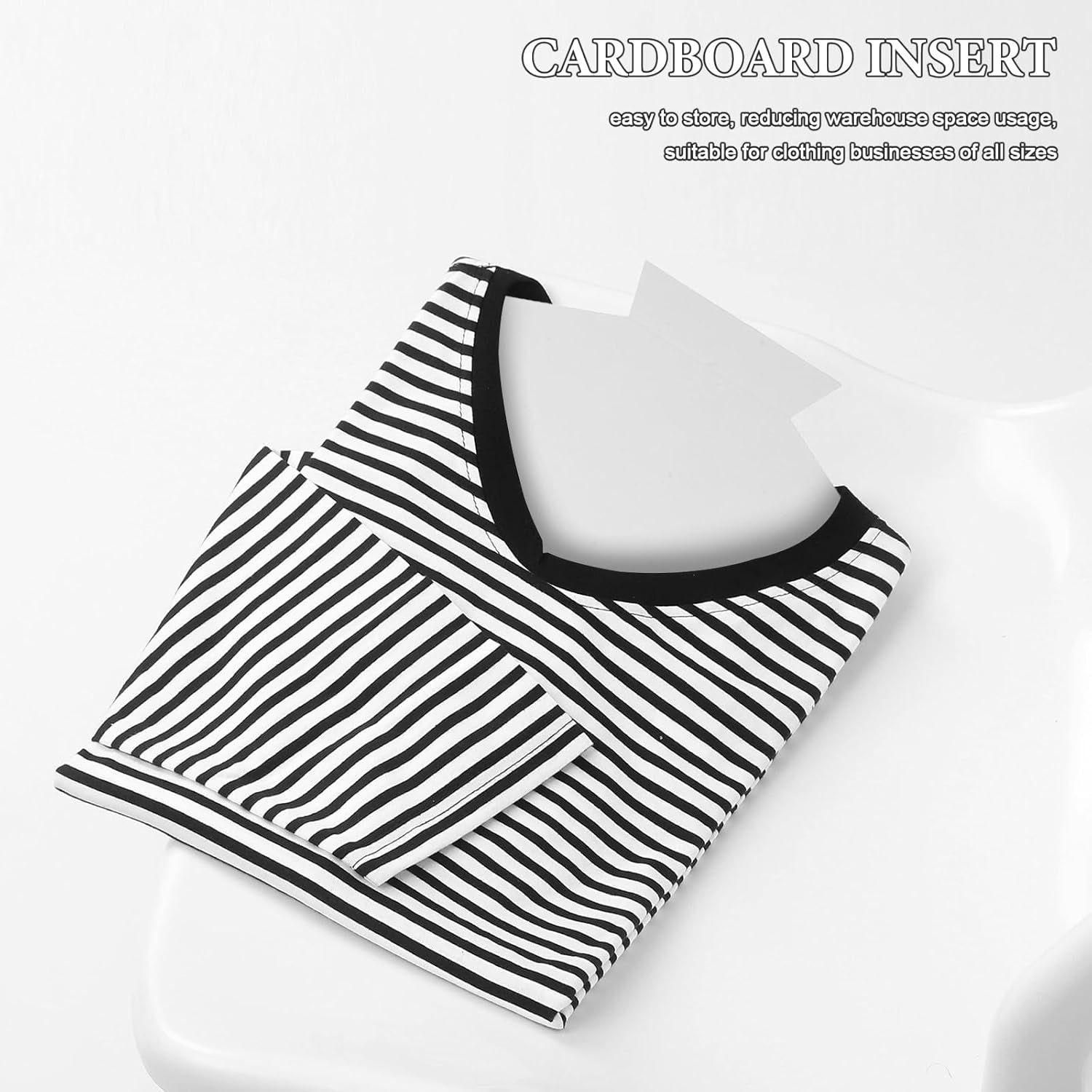 Description Designed to simplify shirt folding and packing, these cardboard inserts are great for maintaining garment quality. Their smooth texture prevents creases and adds a professional touch to clothing presentation, suitable for retail displays, travel packing, or home organization. Features -Color:White -Material:Cardboard -Size:36.00X22.00X0.10cm/14.15X8.65X0.04in -Material Strength: Crafted from sturdy cardboard, these shirt inserts ensure reliability and maintain their shape during packing and organizing, making laundry duties more efficient -Ample Quantity: you'll have plenty of inserts available for your entire wardrobe, allowing for seamless organization of dress shirts and casual wear -Versatile Application: Ideal for both home and commercial use, these cardboard inserts are perfect for retail settings, and personal laundry routines, enhancing overall presentation -User-Friendly Design: Each cardboard insert features an easy-to-use design that simplifies the clothes folding process, ensuring that your shirts remain crisp and wrinkle-free during storage -Target Audience: Designed for individuals and businesses alike, these tshirt inserts cater to anyone looking to elevate their garment organization, including fashion enthusiasts and professional services