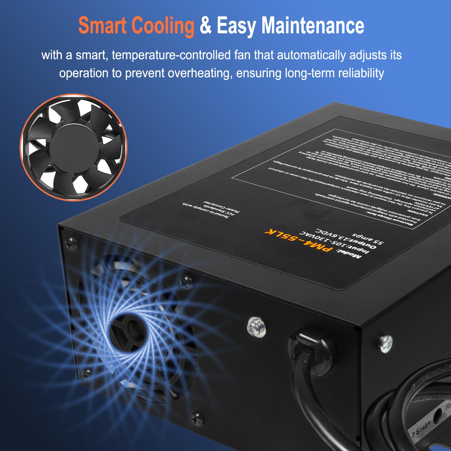 The 55A RV Power Converter is used to convert AC power to DC power, converts 110V AC into a stable and reliable 12V DC power source, ideal for charging batteries or powering 12V devices. Also, it has fully flexibility adjustable output, adjustable within a wide range from 13V to 16.5V.