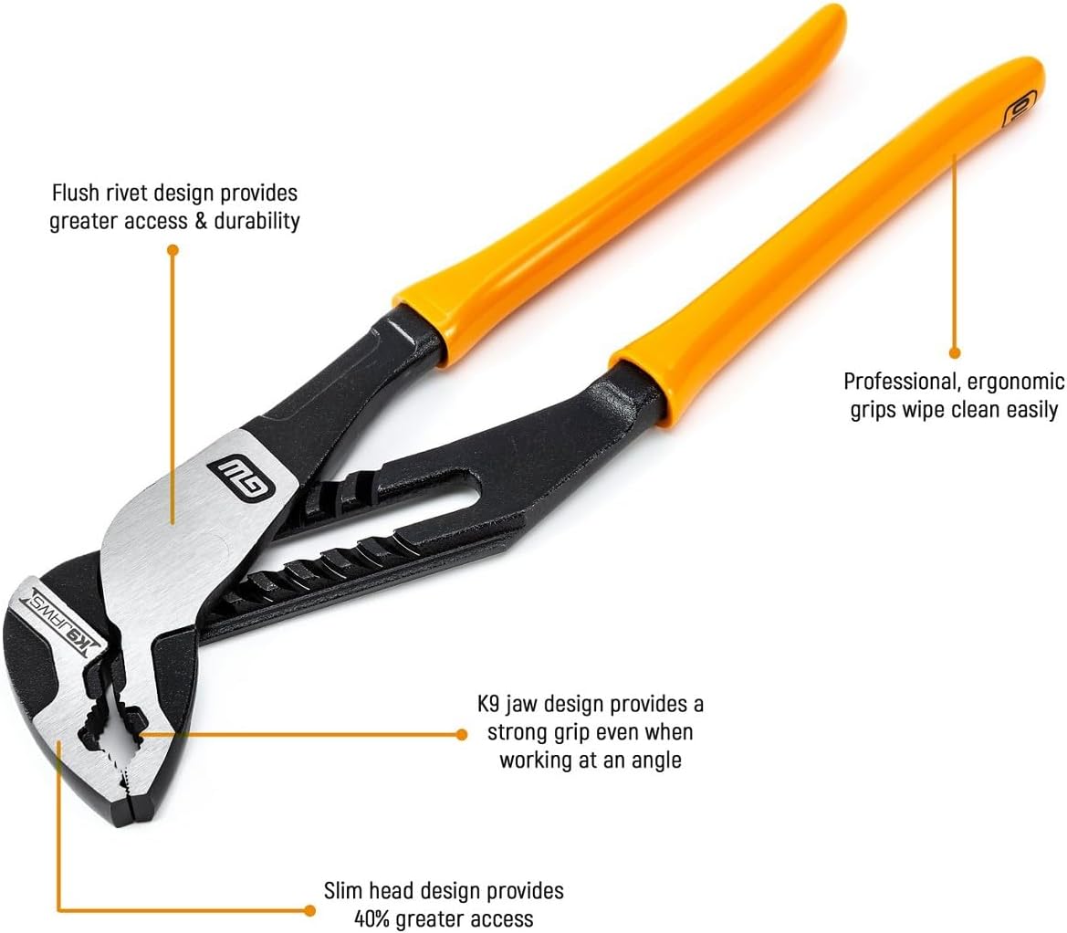 The GEARWRENCH PITBULL line of pliers is GEARWRENCH's most advanced range of industrial pliers. The PITBULL line of pliers offer the industrial / automotive technician the best grip and cut day in and day out. They are forged from alloy steel and precision machined for long life and durability. The PITBULL pliers offer unique features such as the K9 Jaws which provide a strong grip, even when on a 35° angle and a high leverage joint design which provides up to 35% greater cutting power.