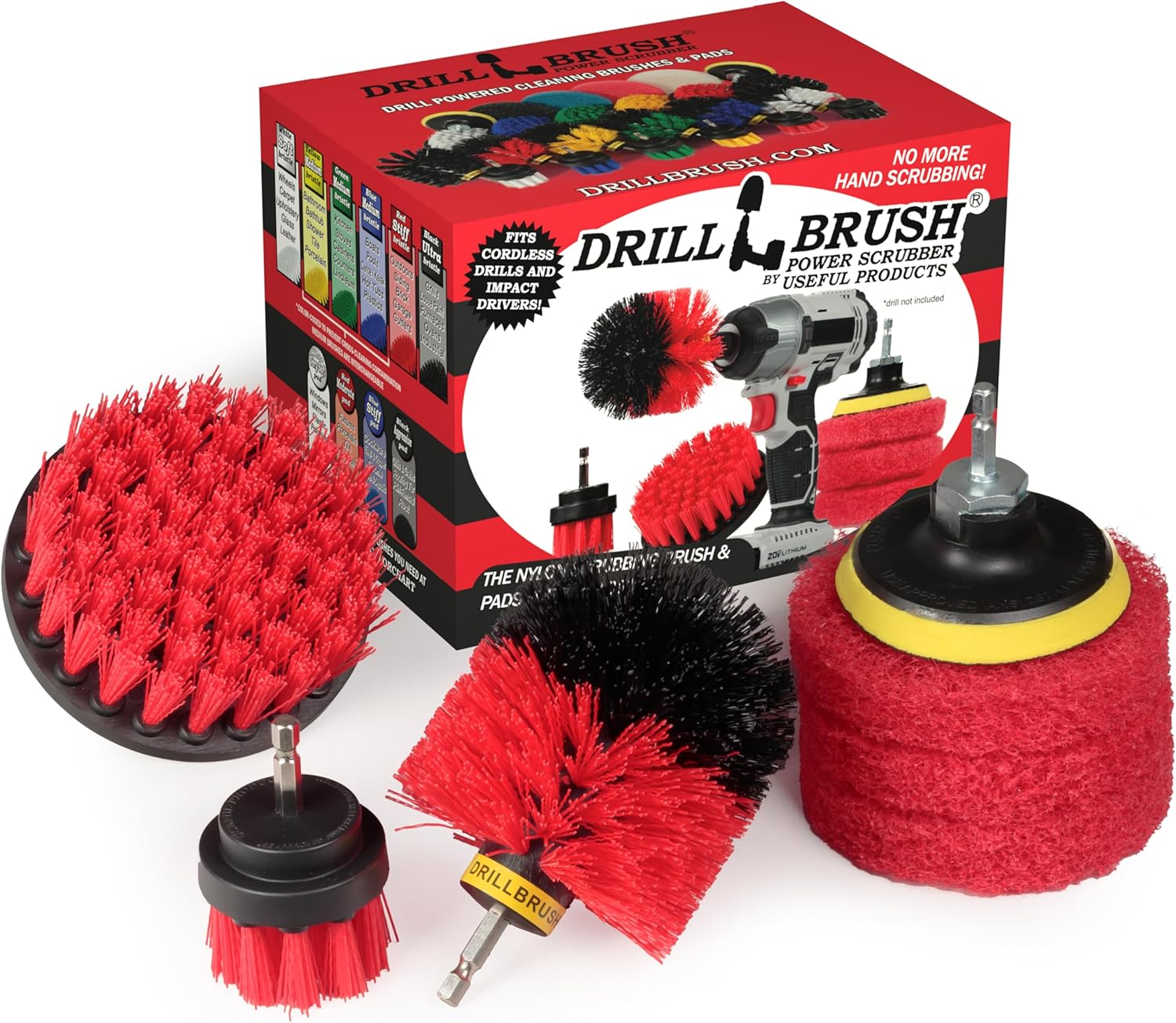 DRILL BRUSH SCRUBBING Combination drill powered brush and pad kit. The brushes are soft white and are well suited to cleaning and detailing cars, boats, and motorcycles. Or use the brushes inside your house along with the scrub pads to clean the kitchen and bath. Clean faster and better than ever before with Drillbrush products. Drillbrush was established in 2007, we have been designing and innovating brushes based on feedback and demand from our valued customers. Our brushes are professional quality and have been tested and approved by commercial cleaners, marinas, detail shops, and others industry “hands on, daily user” reviewers to be the absolute best solution for a wide variety of cleaning and scrubbing tasks. Always look for the “Drillbrush Power Scrubber” logo to insure you are buying an authentic Drillbrush from the leader in drill powered cleaning brushes. Drill NOT included.