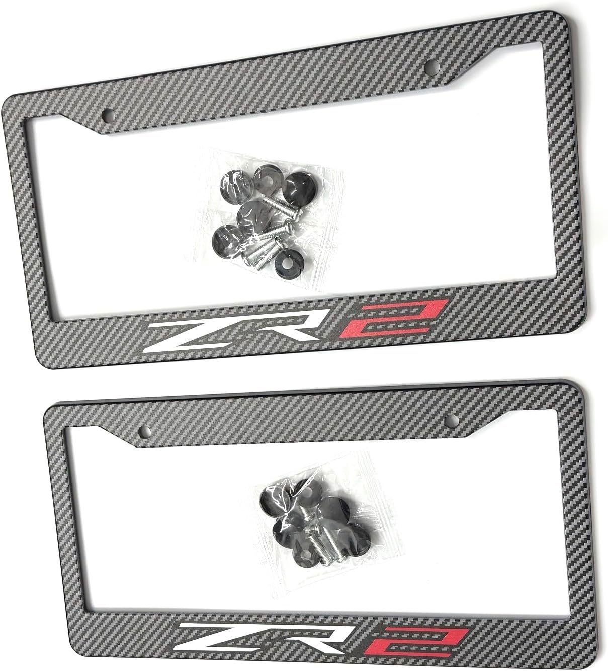 2PCS Carbon Fiber ZR2 License Plate Frame Tag Cover Holder Mount