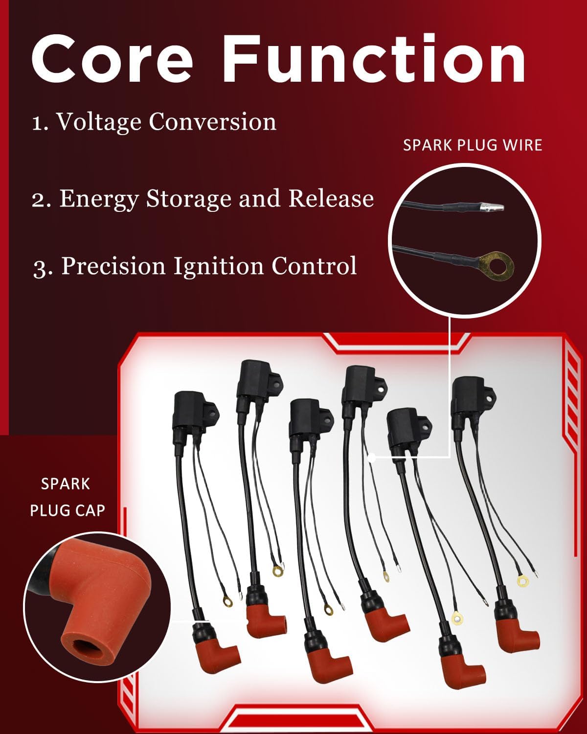 Kirogi 6R3-85570-01-00 6R3-85570-00-00 Ignition Coils 6 pcs Compatible with Yamaha Outboard 100hp 115hp 130hp 140hp 150hp 175hp 200hp 225hp (2 Stroke) Engines 697-85570-00-00 6H2-85570-00-00 Interchange Part Number: 697-85570-00-00 6H2-85570-00-00 6R3-85570-01-00 6R3-85570-00-00 Ignition Coils Vehicle Compatible Models: Compatible with Yamaha Outboard 100hp 115hp 130hp 140hp 150hp 175hp 200hp 225hp (2 Stroke) Engines Package Content: Pack of 6* Ignition Coils Fitment type: Direct Replacement, Easy to install. Material: Steel Please carefully verify the following information before placing your order: 1.Ensure the product images match your old part 2. Confirm the product part number is the same with yours 3. Check that the compatible vehicle model matches your car Be made of high-quality stainless steel and wear-resistant materials. Rigorously tested to withstand high temperatures, resist corrosion.