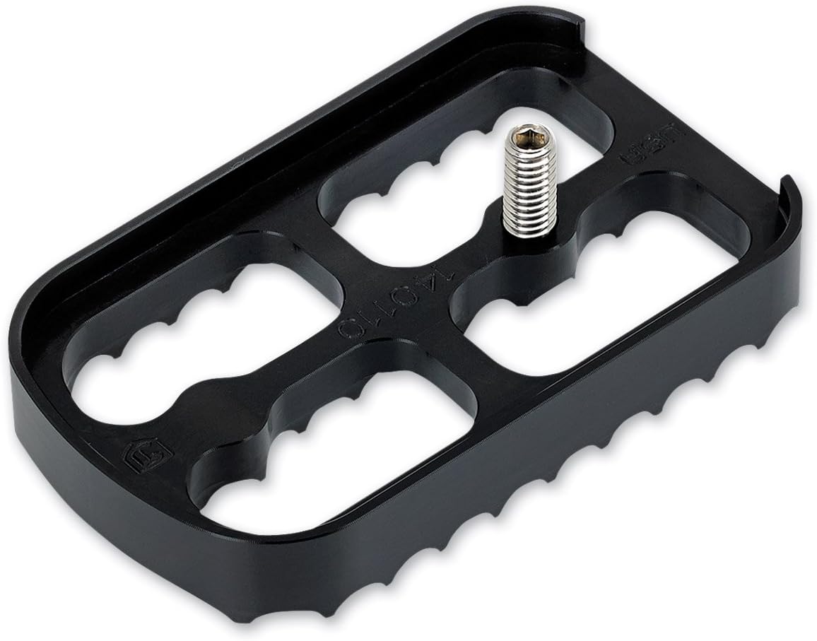 • CNC-machined from solid 6061 T-6 aluminum• Super sturdy yet light weight• Serrated foot area has great traction so your foot won't slip off• Measures 2-3/4″ L x 4-1/2″ W