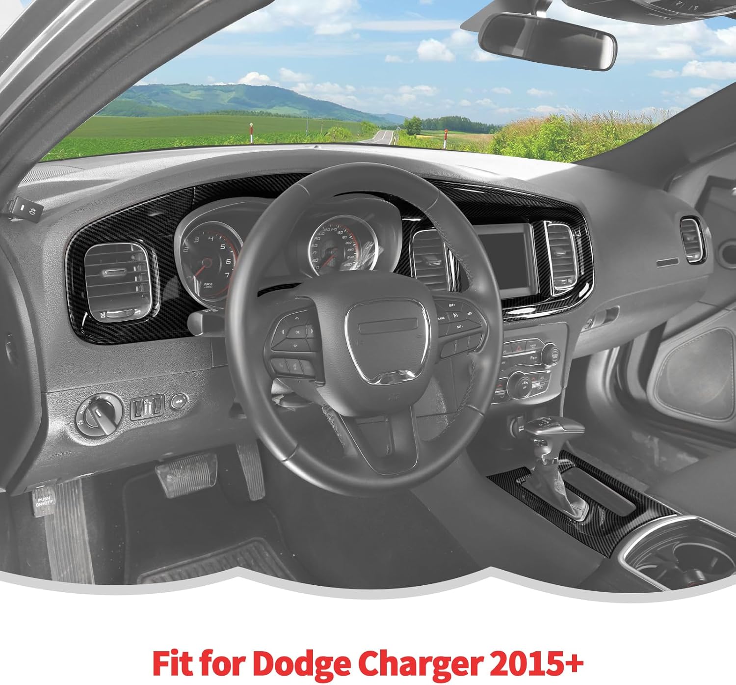 RT-TCZ Interior Trim Kit Cover Center Console Dashboard Panel Gear Shift Panel Trim Decoration Accessories for Dodge Charger 2015-2025,6PCS