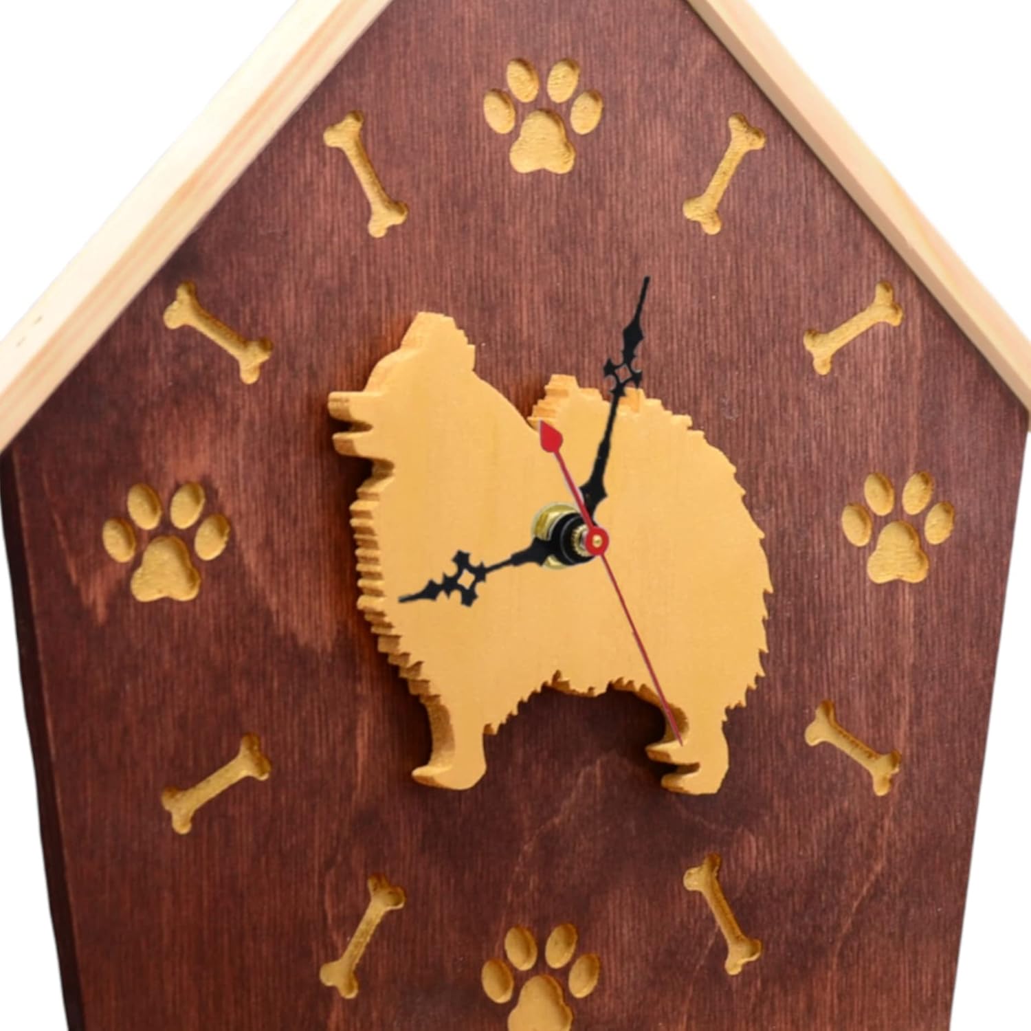 POMERANIAN Personalized Wall Clock Introducing our New Personalized Wall Clock with your breed as the centerpiece. The clock face is designed in DogPound Creations' signature doghouse shape with dog bone and pawprint details carved directly into the clock face Accented in your choice of 3 stains and 3 metallic colors, gives you 9 passible combinations to create a custom look. (Note: If you don’t see your breed in our shop, please ask. If we don’t have it we will design it) DIMENSIONS↔ 11.1” (23.2cm) width ↕ 10.5” (39.2cm) height DETAILS Personalization is FREE and encouraged Our clock is made from Baltic Birch & Northern Pine wood We laser engrave our personalization on the bottom Pine strip Quartz clock movement with second sweep hand This Clock is accurate to 1sec per year Requires 1 AA battery (not included) CUSTOM ORDERS We regularly create special requests on all our products We NEVER charge any more for custom requests We always send you a proof for approval before you order BULK PURCHASES We do offer wholesale pricing on all our products Price incentives start at quantities of 10 or more Combinations of 10+ products are allowed Please message us for more information We welcome the opportunity to provide you with our fine quality woodcraft gifts Kindly, DogPound Creations