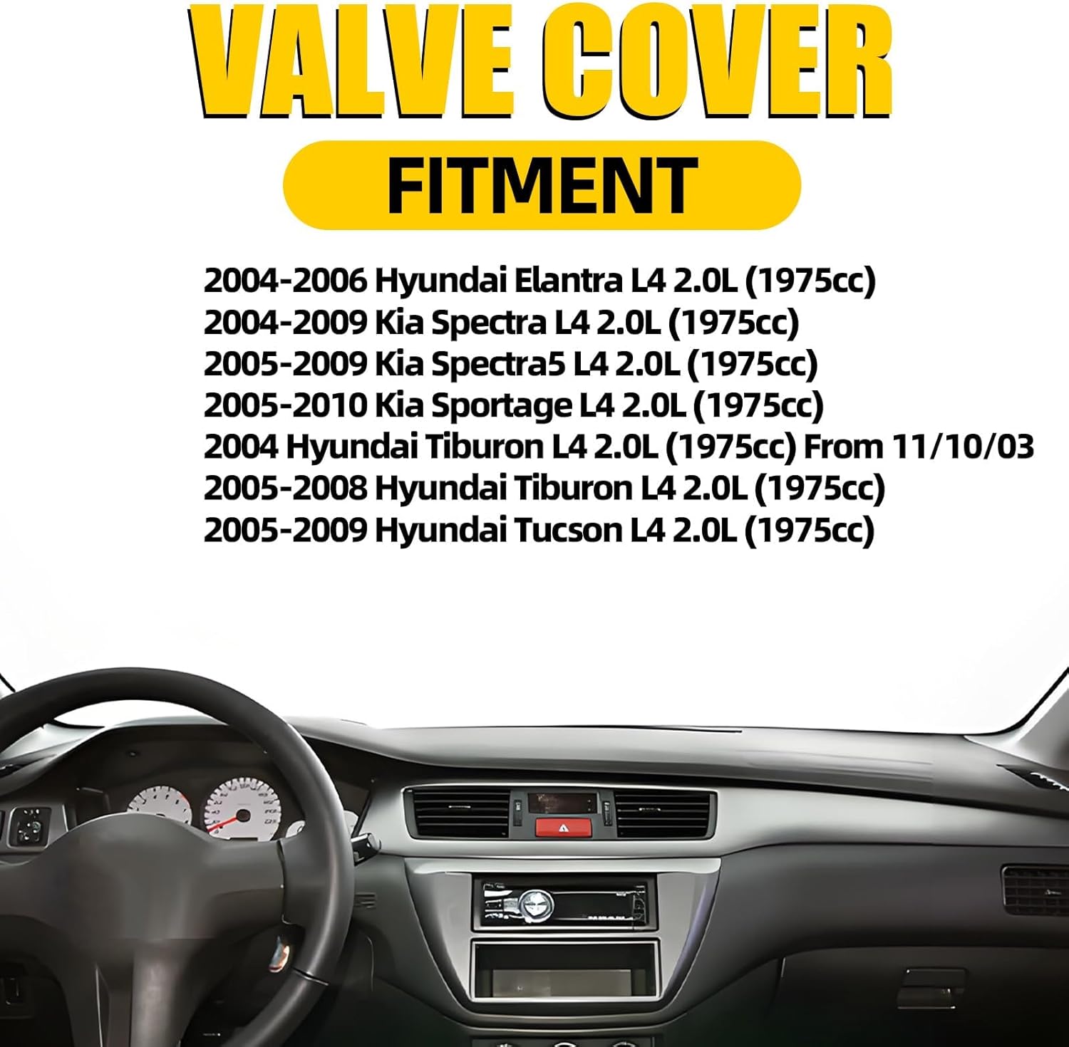 | Compatible with Vehicle Type | 2004 Hyundai Tiburon L4 2.0L From 11/10/03, 2005-2008 Hyundai Tiburon L4 2.0L, 2005-2009 Hyundai Tucson L4 2.0L, 2004-2006 Hyundai Elantra L4 2.0L, 2004-2009 Kia Spectra L4 2.0L, 2005-2009 Kia Spectra5 L4 2.0L, 2005-2010 Kia Sportage L4 2.0L |
