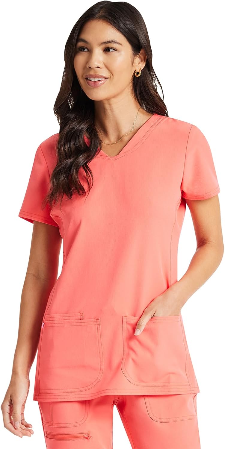 Hearts will go pitter pat when they see this stunning signature princess-seamed V-Neck with double-needle top-stitched rounded patch pockets, roomy side vents and our innovative headphone cord system. Center back length 25 1/2. CHATSWORTH, CA, 91311 US
