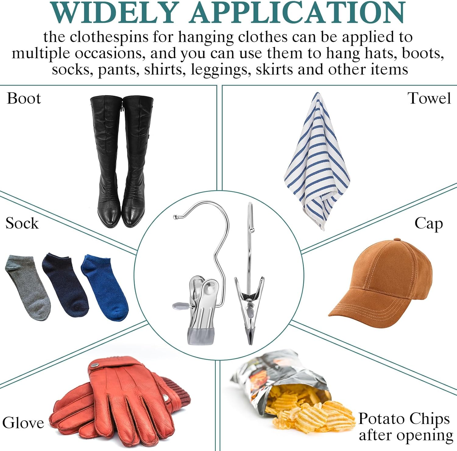 Features: Considerate gifts: It is considerate of you to send the sock hangers to your friends, families, colleagues, relatives, neighbors, and others you want, to show your care and deliver life convenience, whenever they receive, they will be delightful to receive. Functional items for families: These portable hanger clips can help you hang and dry your clothes, and help keep your house tidy, which can be your practical tools for daily life, camping, business trip and more. Specifications: Material: stainless steel, rubber, spring Color: gray, black, dark green, light green, light pink and light blue Size: as the picture shown Package includes: 300 x Small clothes pins Notes: Manual measurement, please allow slight errors on size. The color may exist a slight difference due to different screen displays.