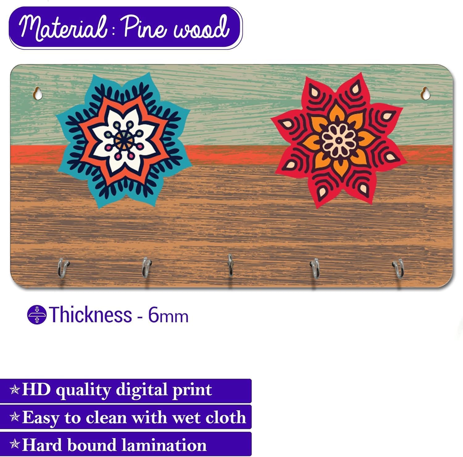 Keep your entryway or workspace tidy and organized with this elegant wall-mounted wooden key holder. Designed with functionality and simplicity in mind, the KH21 key holder features a compact design with multiple hooks, perfect for managing everyday keys, lanyards, or small accessories. Crafted from durable wood, it not only serves as a practical organizer but also adds a touch of warmth and charm to your interior space. Ideal for use in homes, offices, or entryways, this key holder is both decorative and functional. Easy to install with the included mounting hardware.