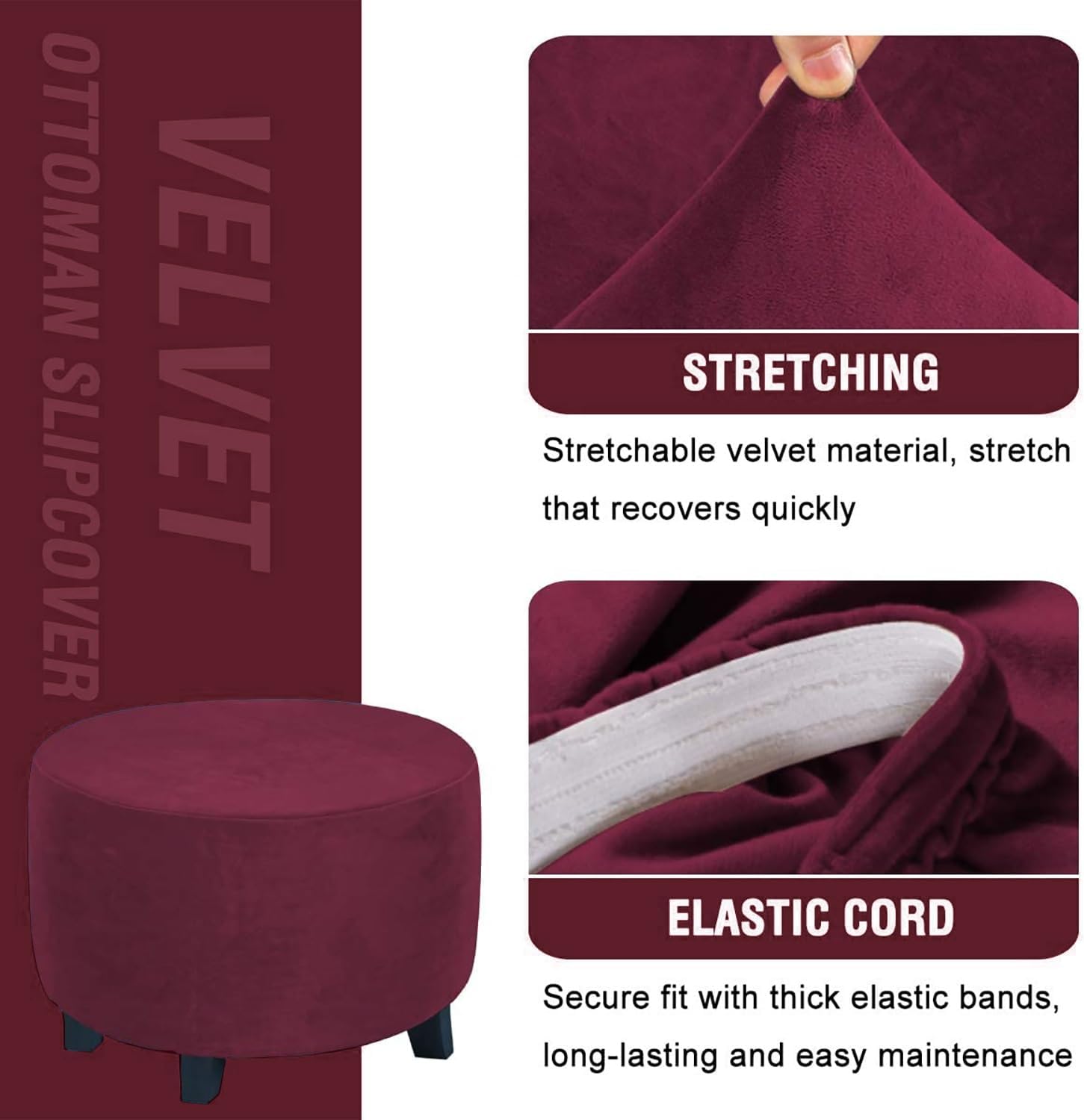 Material: Crafted from durable and soft high stretch knitted polyester fabric.Universal Design: Suitable for most round ottomans, please kindly measure before ordering.Full Protection: Soft and comfortable, for homes with children and pets.Function: Protect your ottoman from spills, stains and tearing.Non Slip: With elastic band closure, can be adjustable and easy to install.Care instructionsWrinkle-free for easy maintenance. Machine wash cold, do not bleach, tumble dry at low temperature without ironing.-Warm reminder to always wash before first use, especially for dark color covers.Package Included:1 xFootstool Protector Cover (Note: We only sell stool covers, not stools!)Note:1. Due to the light and screen difference, the item's color may be slightly different from the pictures.2. Please allow 0.5-2 cm differences due to manual measurement.