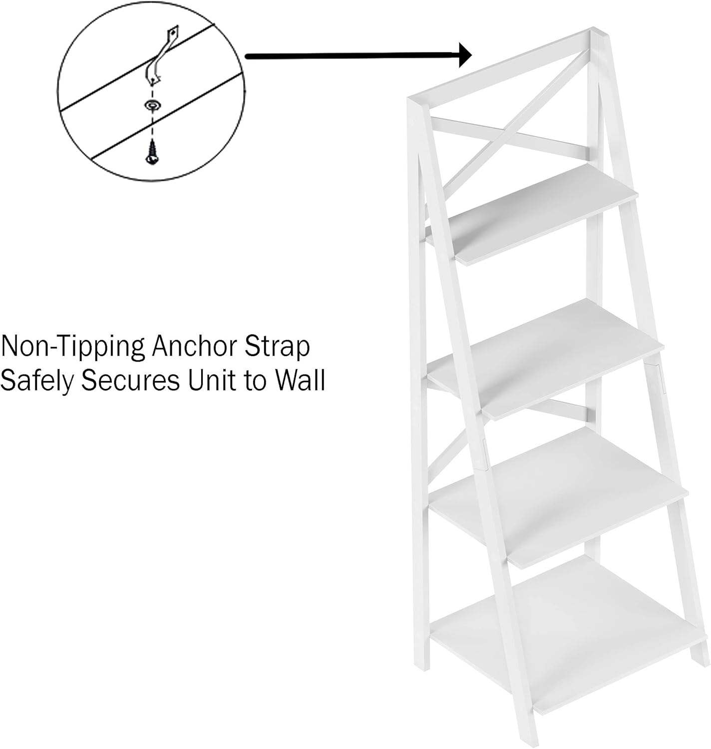 | Item Type Name | 4-Tier Ladder Bookshelf - Freestanding Shelved Bookcase with X-Back Frame and Leaning Look - Display Shelves for Home or Office by Lavish Home (White) |
