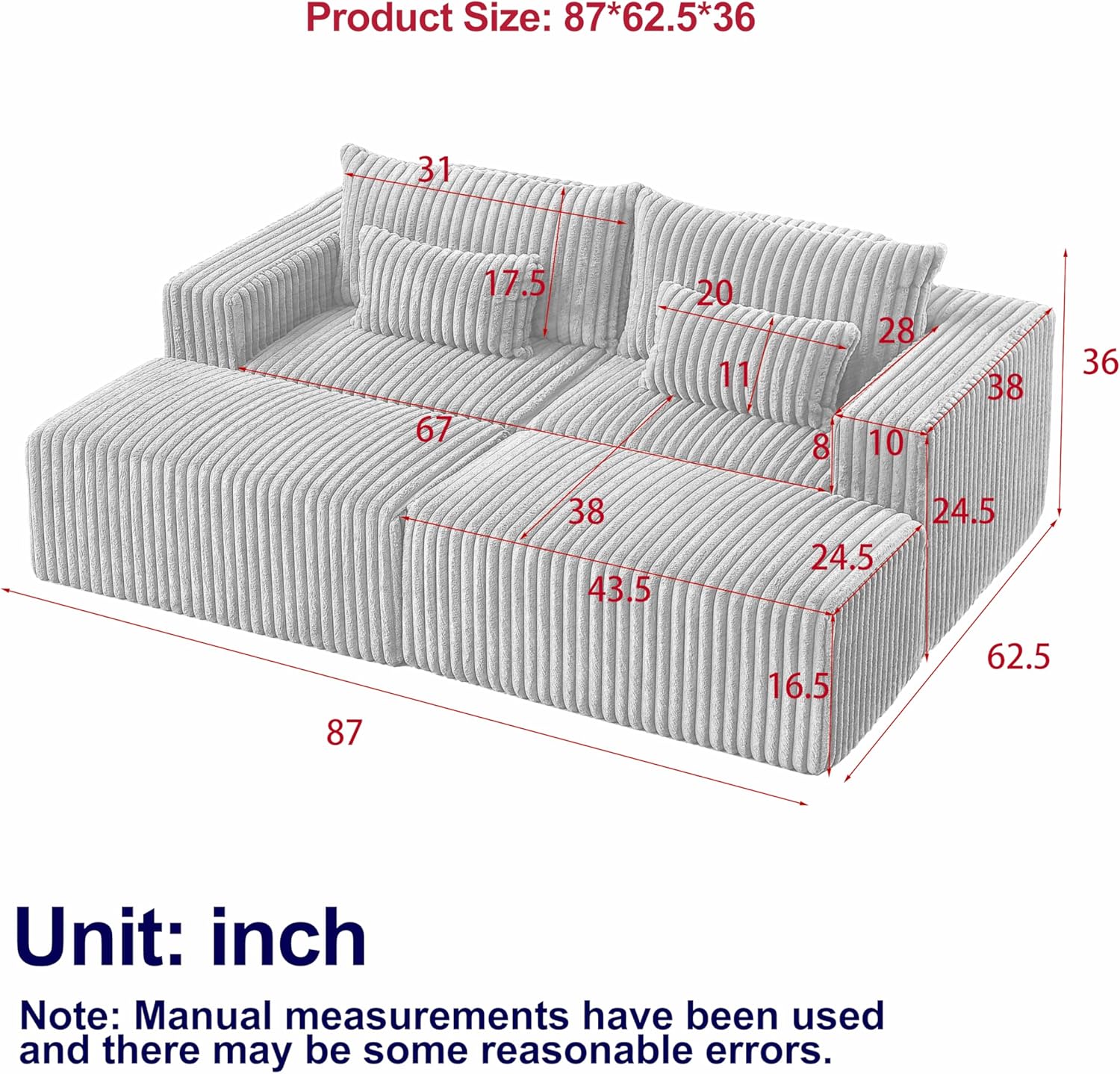 | Seat Depth | 38 inches |
