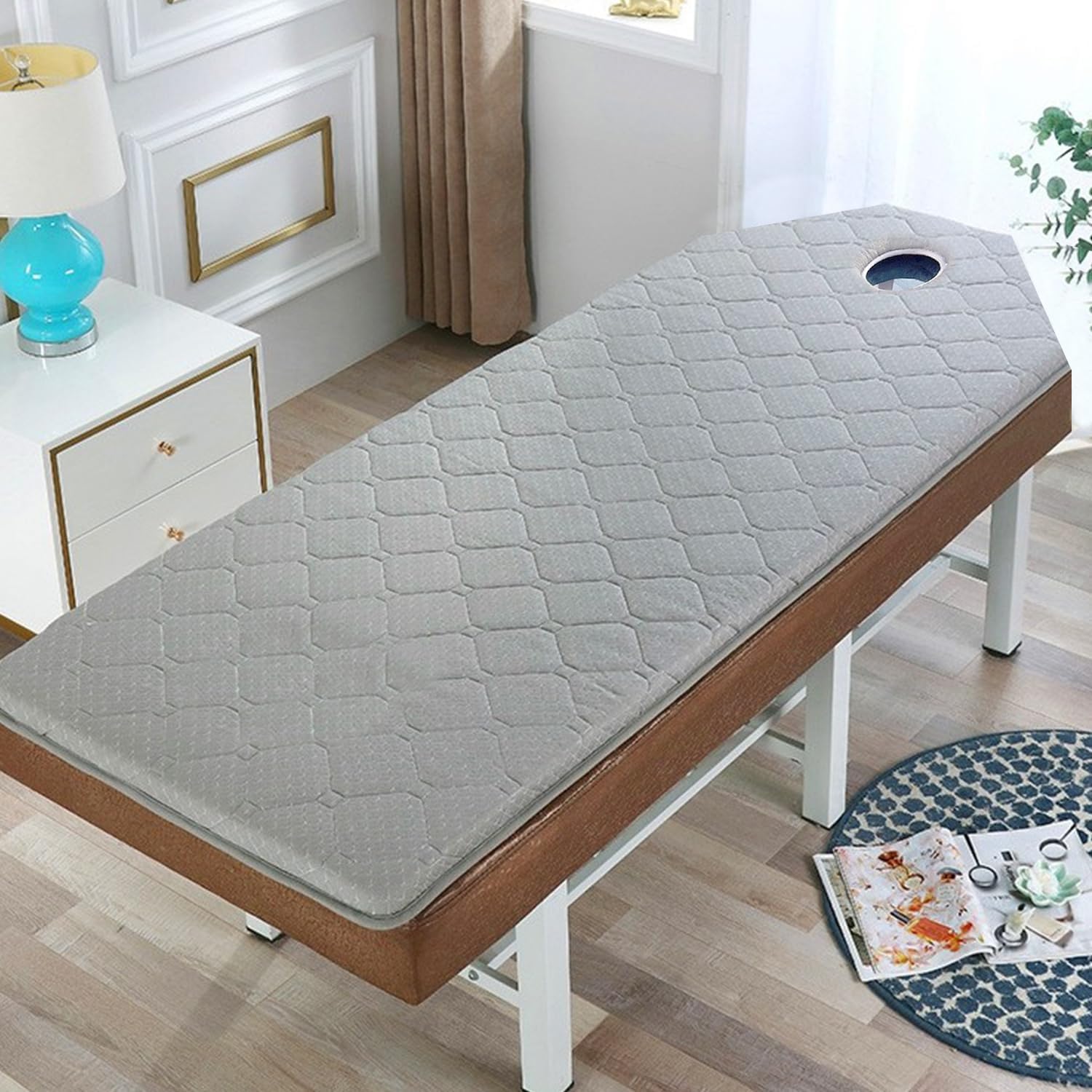 Our knitted breathable beauty mattress padLying on top is comfortable and softWarm and breathableYou can use this beauty salon mattress pad in any seasonFabric: Knitted fabricFilling:high-density foamThickness: 6cm(2.4in)With or without facial breathing holes:with holeMassage mattress shape: (S)Square Head, (R)Round Head, (T)Trapezoidal HeadSeason of use: all seasonsUse places: beauty salon, health center, chiropractic, spa sauna, physiotherapy massage parlor, etc.Color:white,graySize:60*180cm(24*71in)70*180cm(28*71in)70*185cm(28*73in)70*190cm(28*75in)75*190cm(29.5*75in)80*190cm(31*75in)Packaging Details: 1 x Mattress Topper for Massage Table(Excluding Display Bed)Kind Tips:1.This model is a soft mattress, and there will be an error of 1~3cm after being compressed and packed, which will not affect your later use (please be careful if you mind)2.The product photos are all taken in kind, which may be due to the light and different monitors when the pictures were taken. The problem of color difference caused by the display deviation and personal color understanding is unavoidable (such problems are not quality problems )3.Not removable and washable, needs to be spread with sheets! ! !
