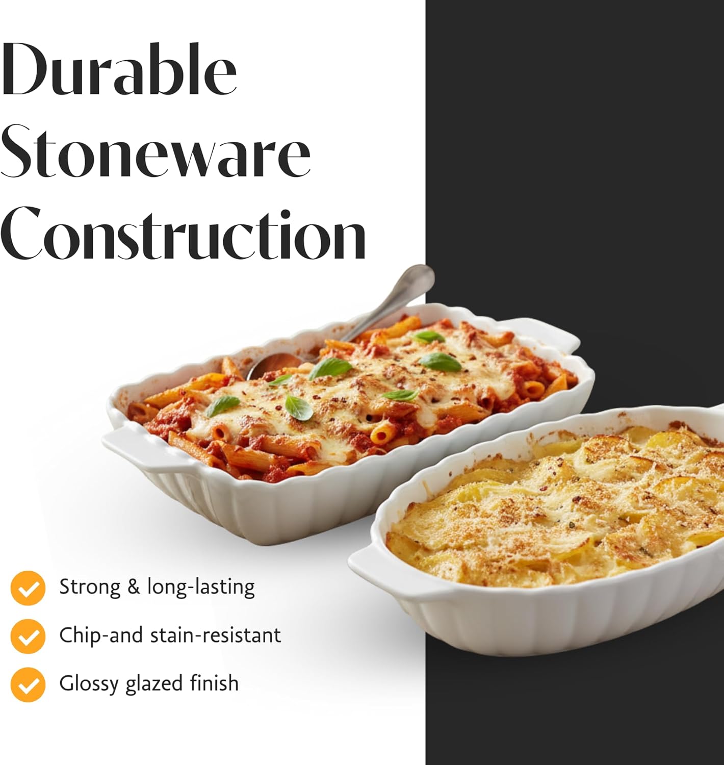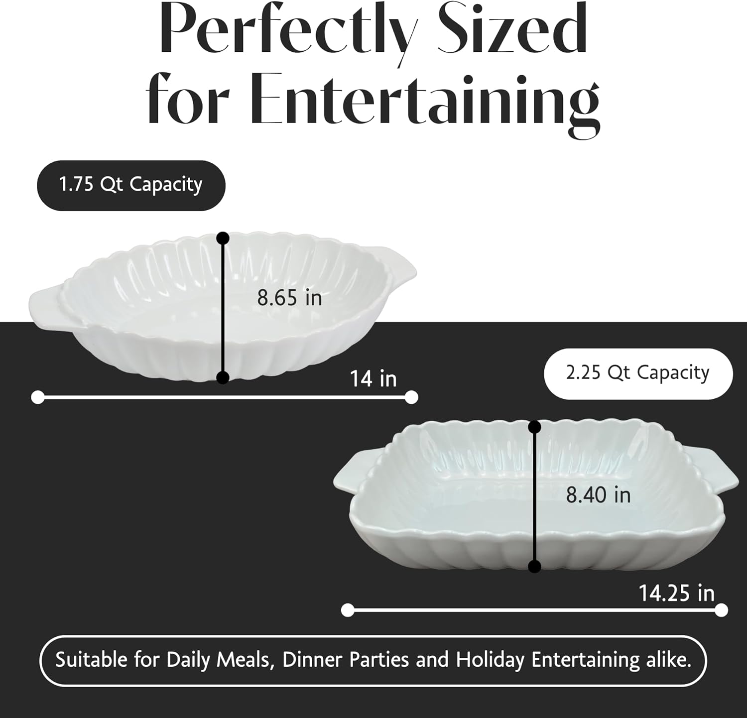 Elevate your baking and serving game with the BIA Cordon Bleu Petal Baker Set of 2, featuring one rectangular 2.25-quart dish and one oval 1.75-quart dish, both designed with elegant detail and practical performance. Each baker showcases a flower-inspired coupe shape, embossed petal pattern, and a scalloped edge, bringing graceful artistry to your table. The integrated side handles offer ease of movement from oven to table while enhancing their visual charm. Constructed from durable porcelain, these dishes are built to withstand microwave, oven, and dishwasher use, offering flexibility whether you're roasting vegetables, baking casseroles, or serving festive dishes. The 14.5 x 8 x 2.5-inch rectangular baker suits hearty mains, while the 14 x 8.5 x 2.5-inch oval dish works beautifully for sides, desserts, or layered dishes. These dishes are more than just functional—they’re display-worthy. Use them to serve meals directly from the oven at holiday dinners, potlucks, or elegant home gatherings. Whether you're a frequent host or simply love beautiful kitchenware, the BIA Cordon Bleu Petal Baker Set delivers both culinary performance and decorative appeal.