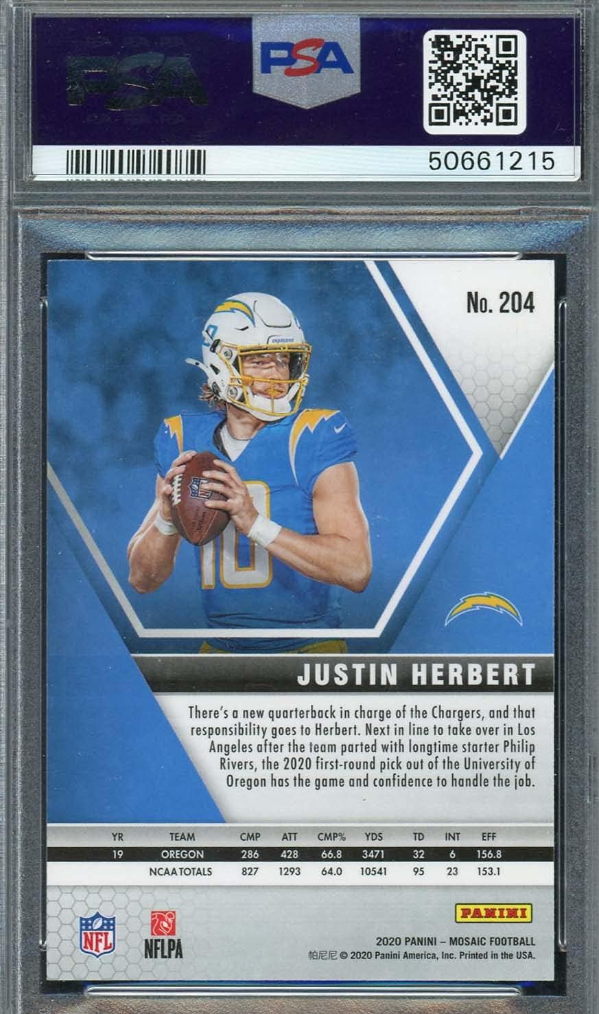 Justin Herbert 2020 Panini Mosaic Football Rookie Card RC #204 Graded PSA 9 MINT