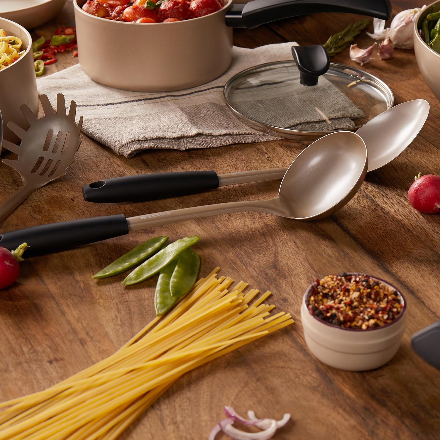 Salter BW11131EU7 Olympus Collection Ladle, Long-Lasting Stainless Steel Soup Spoon Kitchen Utensil, Hanging Hook, Easy-Clean, Metal Multifunctional Cooking Tool For Stews, Sauces, Punchbowls, Gold