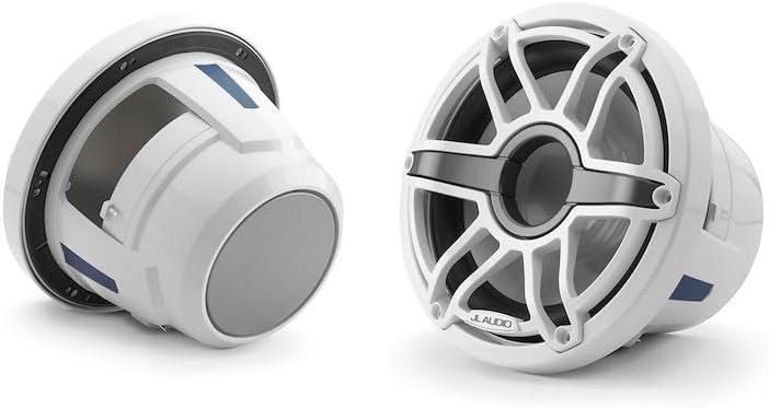 Experience top-tier performance with the M6 8" Marine Subwoofer, featuring a gloss white sport grille. Engineered for high-power operation, it's versatile, durable, and built to endure marine environments. Enjoy powerful, smooth bass in open-air, with a removable grille for customization. It exceeds international standards for salt fog and UV exposure, backed by a 3-year warranty. Optimized for compact enclosures, it's designed for efficient amplification, reducing distortion and enhancing sound quality. Includes one subwoofer, one grille, mounting hardware, and detailed specifications.