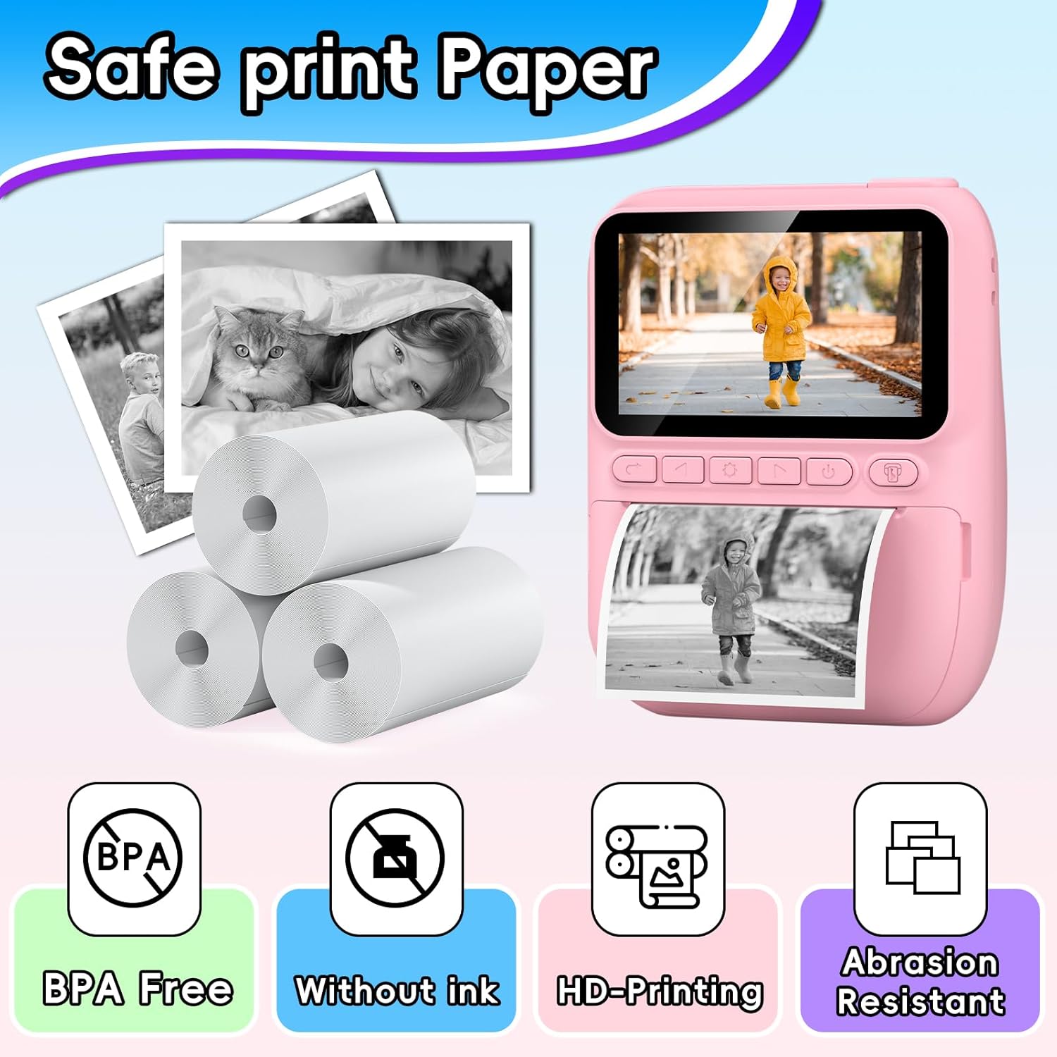 Instant Print Camera and 5 Rolls Refill Print Paper