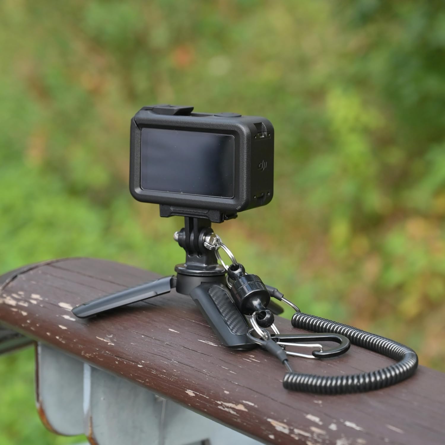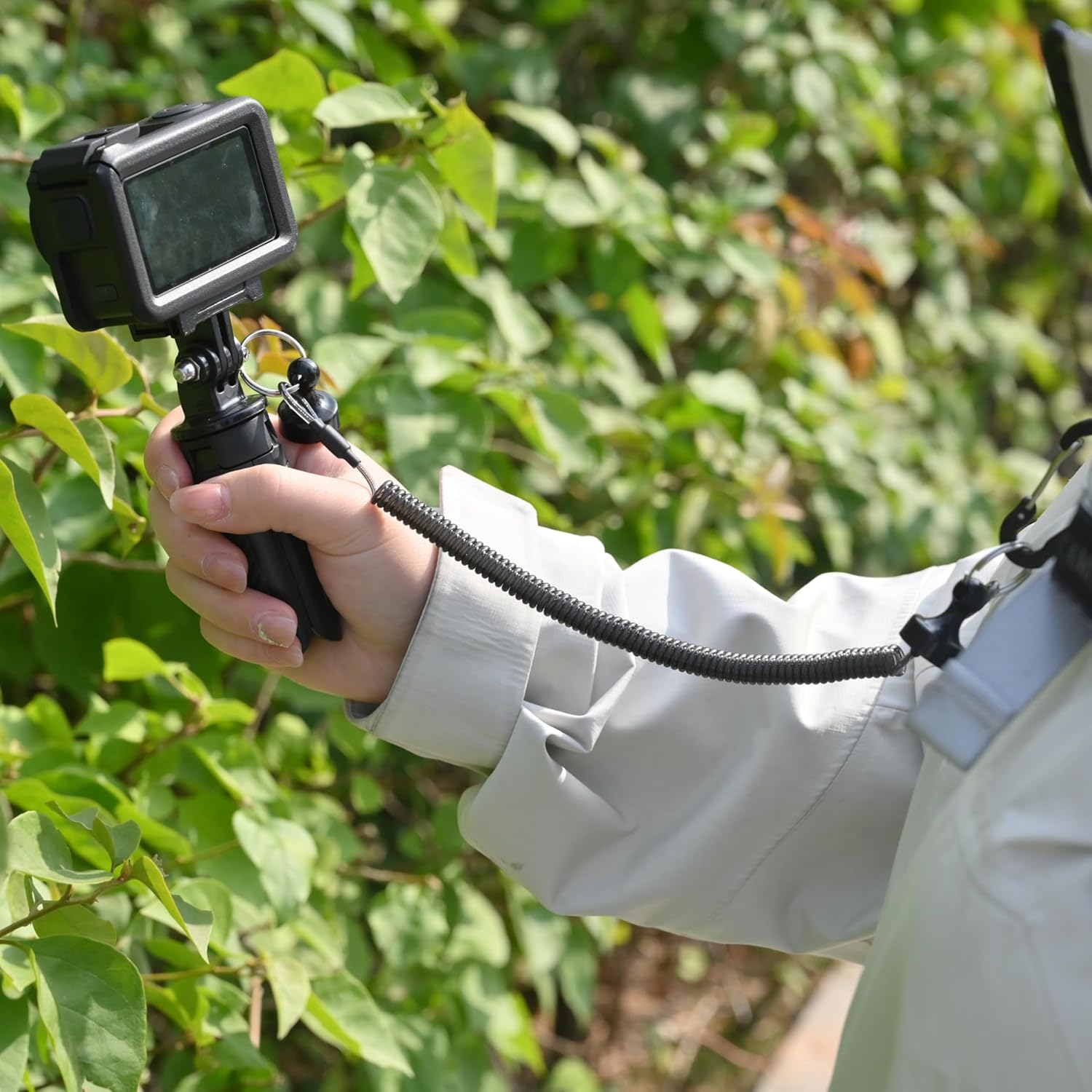 This innovative action camera mount with retractable spring lanyard is designed to keep your DJI Action camera secure during your most adventurous moments. The versatile system features a stretchy spiral coil that extends up to approximately 59 inches and retracts neatly to just 10.63 inches, providing anti-loss protection without restricting your movement. The quick release magnetic buckle allows for instant attachment and detachment, perfect for fast-paced activities where every second counts. The integrated compact tripod grip, measuring 4.72 inches in total length, provides stable hands-free support for selfies, vlogging, and dynamic content creation. Whether you're hiking, biking, or capturing extreme sports footage, the coiled tether with carabiner clip ensures your camera stays connected and prevents accidental drops. Compatible with DJI Action 5 Pro, Action 4, and Action 3 cameras, this lightweight yet durable mount combines portability with reliability, making it an essential accessory for content creators and action sports enthusiasts who demand dependable camera security without sacrificing convenience during outdoor adventures.