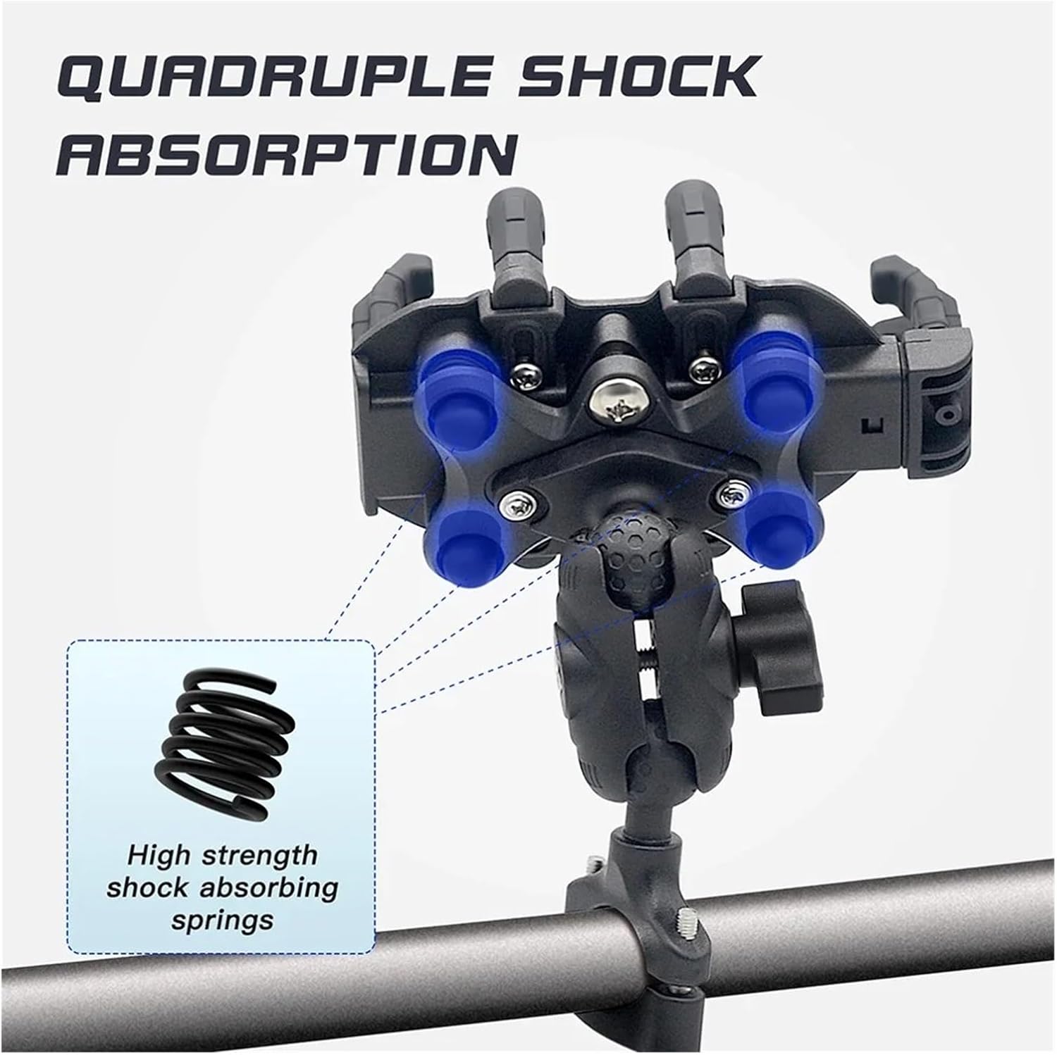 "DescriptionReport Item【Product Name】:Handlebar [with shock absorption] short clamp mobile phone bracket【Material】: aluminum alloy+high toughness nylon【size】: 140 * 87mm【Clip phone width】: manually measure the maximum width of 88mm and the minimum width of 61mm.【Installation scope】: it can be installed on motorcycles/electric vehicles/bicycles/tricycles.【handlebar diameter】: suitable for handlebar diameter of 19-30mm.When mounting for the first time, you only need to insert your cell phone, turn the switch and adjust the holder to the correct width. By turning the switch on and off, the cell phone can be attached or removed in 1s. You can capture the beautiful moments of your trip at any time."
