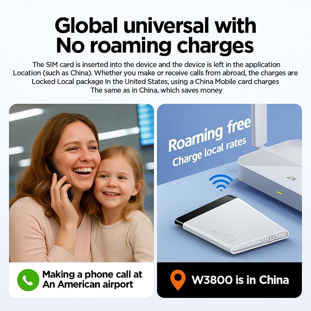 The W3800 Global SIM Hub is a smart multi-SIM device (compatible with iKOS technology) designed for travelers, remote workers, international families, and iPhone eSIM-only users who still need a physical SIM number. Once your SIM card is inserted into the W3800 and connected to Wi-Fi or a router, your phone can remotely “borrow” the SIM from anywhere in the world — allowing you to make calls, receive calls, and send/receive SMS at local home-country rates. Whether your device is placed in China, the U.S., Europe, the Middle East, or Africa, your phone can instantly connect to it without distance limits. Avoid roaming charges, long-distance fees, and the cost of buying multiple eSIM packages when traveling. The device supports up to 7 SIM numbers, making it ideal for business owners, families, and anyone managing multiple lines. One account controls up to five devices, offering complete flexibility for office, home, and travel needs. Designed especially for iPhone eSIM-only models, this solution restores the ability to use a physical SIM number without installing any hardware on your phone. Enjoy smooth, native call quality and stable remote access through Bluetooth 5.0, Wi-Fi, or RJ45 wired network. Travel confidently. Stay connected to your home number. Save money on every call.