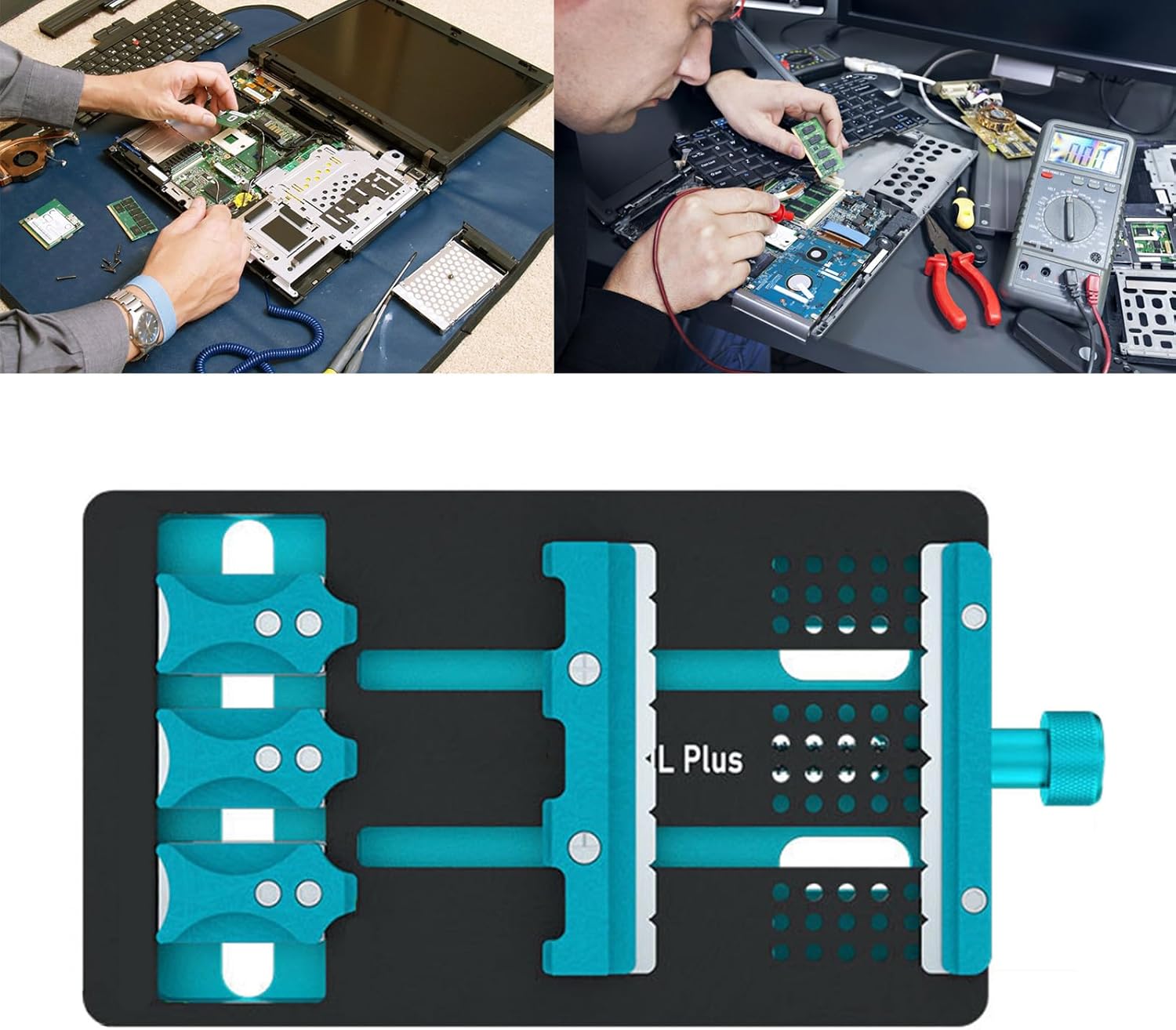 Universally PCB Holder Fixtures For Cellphone Motherboard IC Chip Soldering Double Slot FixturesFeatures:Engineered with high temperature metal, the motherboard Fixtures is practical for any mobile repair task, ensuring durability and reliability during soldering and intricate repairs.The multifunctional designs of this phone motherboard repair station clamp offer versatility, allowing it to secure motherboards firmly for various operatings, enhancing work efficiency for technical tasks.Suitable for professional technicians in the mobile repair industry, this tool provides the necessary equipment to address complex smartphone motherboard issue with precisions.Whether it is for a bustling phone repair shop or a dedicated enthusiasts workspaces, this repair platform delivers a stable systems for efficient maintenance and creative modifications.Crafted from steel, the motherboard Fixtures not only promises long lifespans but also complements your tool with its smooth designs, making it a necessart addition for those passionate about technology and gadget upkeeps.Specifications:Component: SteelSize:Approx.153mm/6.02''x80mm/3.15''Package Includes:1Piece Motherboard FixturesNote:Please allow 1mm errors due to manual measurement. Due to the differences between different monitors, the picture may not reflect the actual color.