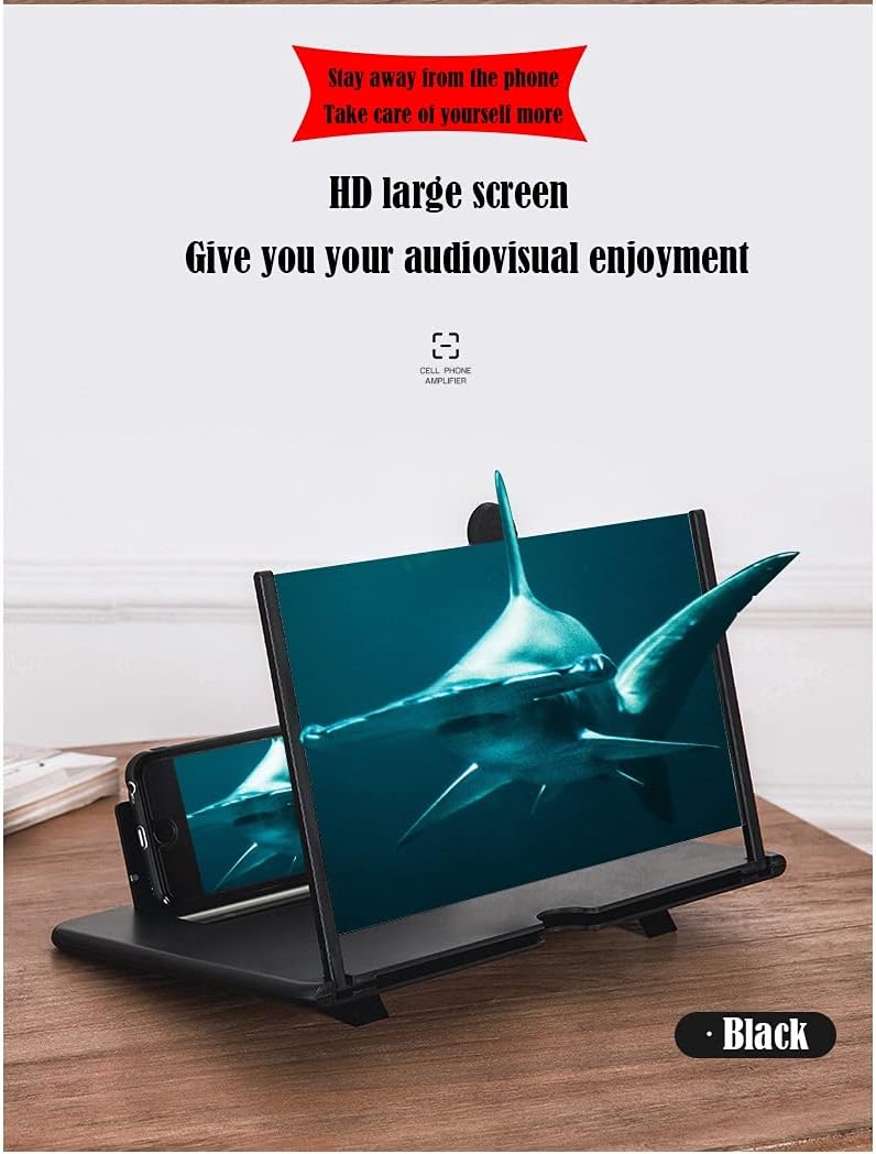 Screen magnifier mobile phone folding bracket home travel .The large 10/12-inch high-definition screen provides better visual effects, reduces radiation, and protects your eyes.No power supply-no power supply, energy saving and .Hold the phone tightly-hold the silicone bezel firmly and hold the phone tightly to prevent it from moving down.Foldable and portable travel folding design. You can use this phone projector anywhere.Suitable for occasions-easy to use, suitable for watching videos, playing games, home office, online courses, leisure and other places.Pull type-The mobile phone screen amplifier uses a pull type structure, which can effectively protect the screen when not in use.Foot Bracket-A mobile phone screen amplifier with a foot bracket can raise the mobile phone screen amplifier to obtain a better viewing angle.Product parametersMaterial: ABS+Acrylic lensColor: black, white, redMagnification: 2-4 timesScreen size: about 12 Packing list1 * Mobile phone screen amplifier(Excluding mobile phones and other props)travel, and other scenarios. Features dual power buttons.