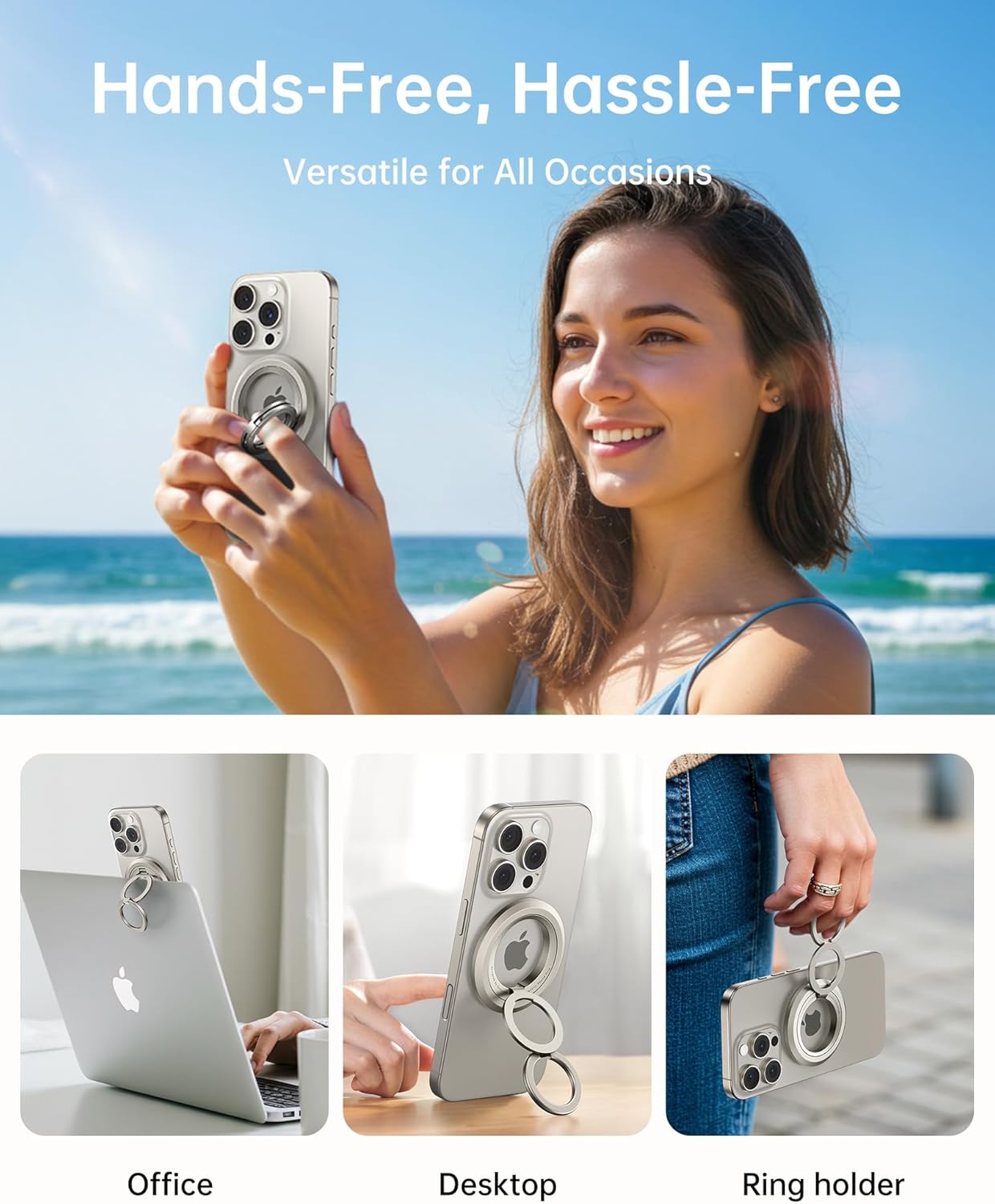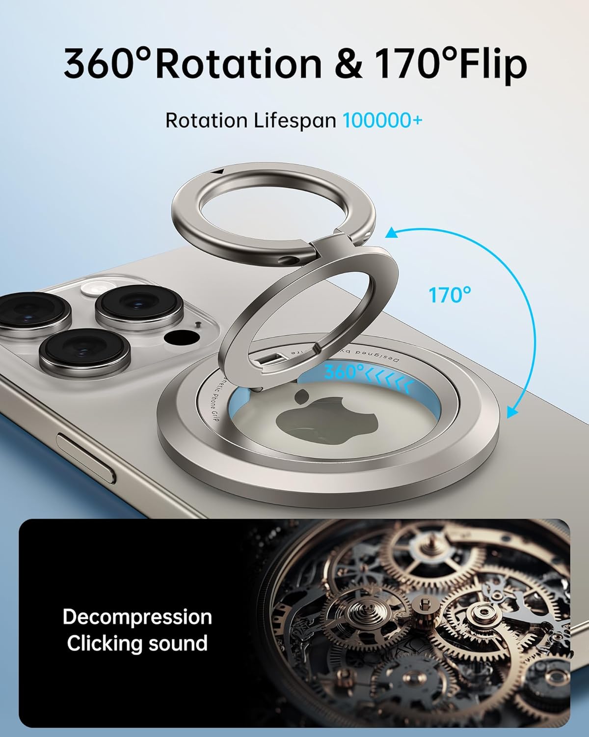 SYNCWIRE Phone Ring Holder Grip for MagSafe, 360° Rotation Magnetic Cell Phone Grip Stand Two-Sided Magnetic Compatible with iPhone 16 15 14 13 12 Pro Max fits MagSafe Accessories - Black+Titanium