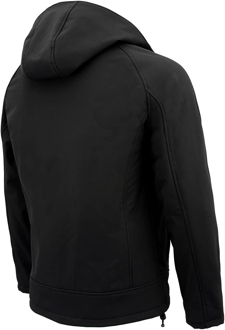 Nexgen Heat LXM1767SET Men's Black 'Heated' Soft Shell Hooded Zipper Front Jacket (Rechargeable Battery Pack Included) Outside FeaturesMade of Lightweight Durable Outer Soft-Shell MaterialFront Zipper ClosureReflective Piping on Front and Back for Night Visibility2 Lower Outside Hand Pockets with Zipper ClosureHeating Garb on NeckInside FeaturesDetachable Hood with Draw Strings - Easy Off ZipperInside Media Pocket with Wire FeedBonus Inside Drop Pockets with Zipper ClosureBuilt-In Hanging LoopFully LinedNexGen Heated Technology DetailsPower-On Button on Chest with NexGen Logo (Lights on When On) Heated Panels: Front and Back Heated Panels 3 Heat Settings: (Low-95f, Medium-105f, High-120f) Inside Built in Waterproof Pocket Holds Portable Battery PackPowered by 10000 MAH 7.4V Rechargeable Battery Pack Included Battery with Wall Charging Kit
