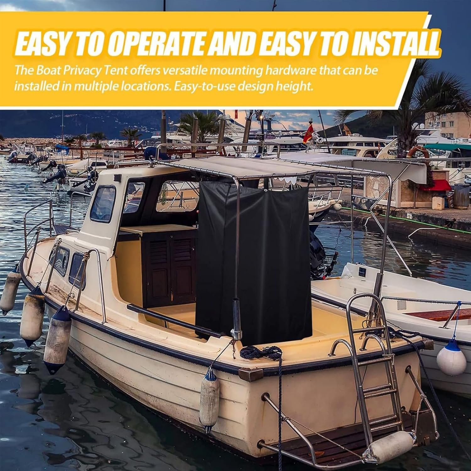 Portable Dressing Tent Quick Setups Privacy Shelter Marine Shelter Tent for Yachts Camping Water Sports 182x76x68cm Features: The boats privacy shelter a spacious 182x76x68cm changing tent with thickened oxford fabric, ensuring full privacy and portability for outdoor activity enthusiasts With reinforced and innovative isolation design, this shelter provide secure coverage for quick outfit changes in open Ideal for boaters, beachgoers, and campings family, this tent accommodates adults and needing discreets clothing changes during water sports or group trip Perfect for yachts decks, lakesides campsites, or crowded beach, the folding shelter transforms into temporary sunshades or shower booth within second Builting with, saltwater materials, this multipurpose shelter maintains structural integrity, doubling as a small makeup station or gym changing pods Specifications: Component: Oxford Cloth Color: Black / Gray Size: Approx 72x30x27inch ( 182x76x68cm) Package Includes: 1PC Dressing Cover Note: Please allow 1-2cm errors due to manual measurement Due to the differences between different monitors, the picture may not reflect the actual color from the item