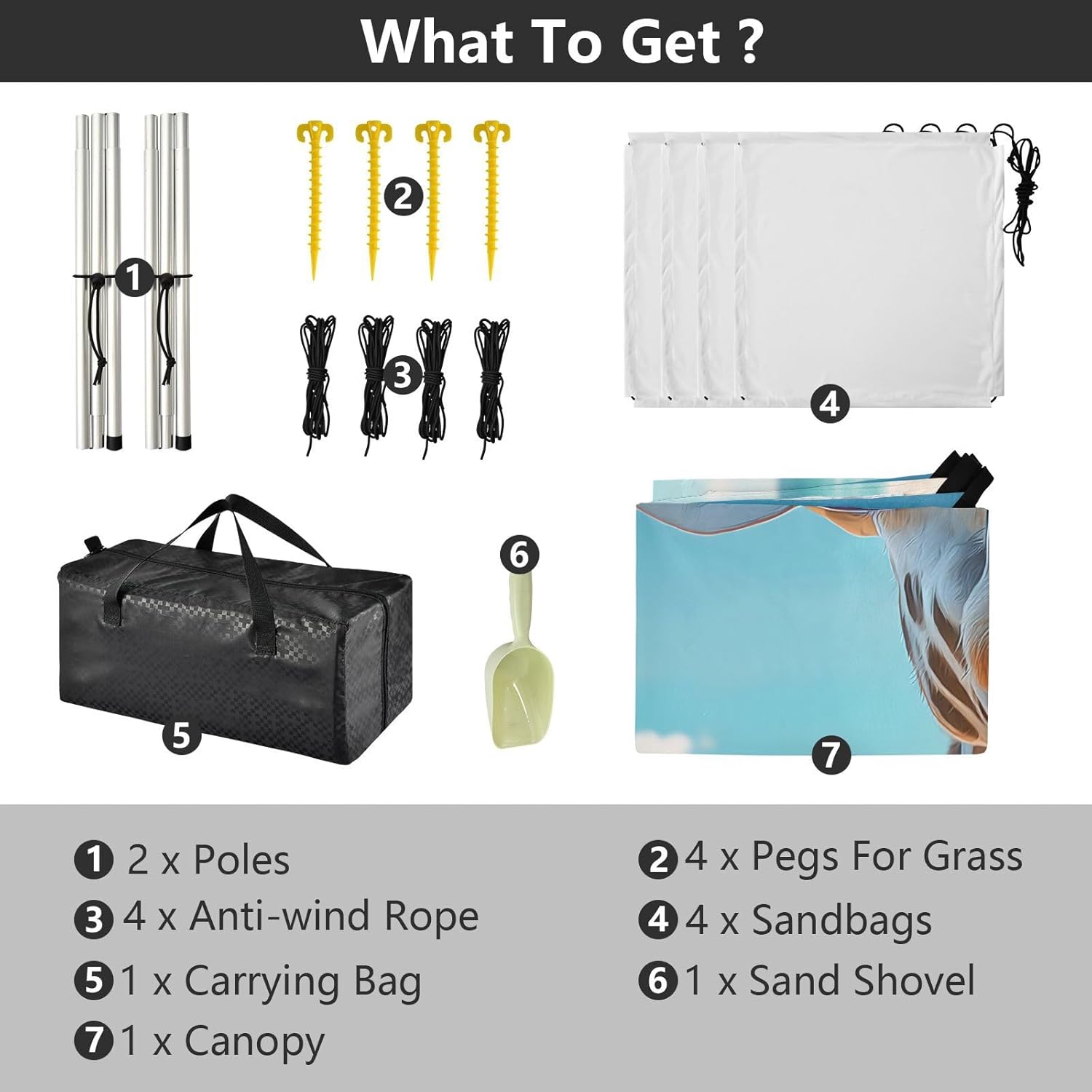 Unpack Cooling trip in 10 minutes! Our 280x320cm beach tent features silver-coated polyester oxford fabric that actively deflects heat while providing UPF 50+ protection-say goodbye to sunburns and squinting! Express your style with eye-catching, tropical-inspired prints that transform ordinary shade into a vibrant oasis. Engineered for stubborn coastal winds, the reinforced frame supports extra guy ropes alongside the included 4 refillable sandbags (use the free shovel!), 4 heavy-duty steel stakes, and 4 reinforced ropes. This high-grade anchoring system laughs at 25mph gusts while you relax. Adventure Beyond Sand: Beach lounging Lakeside camping Park picnics Fishing trips Festival hangouts Backyard "staycations