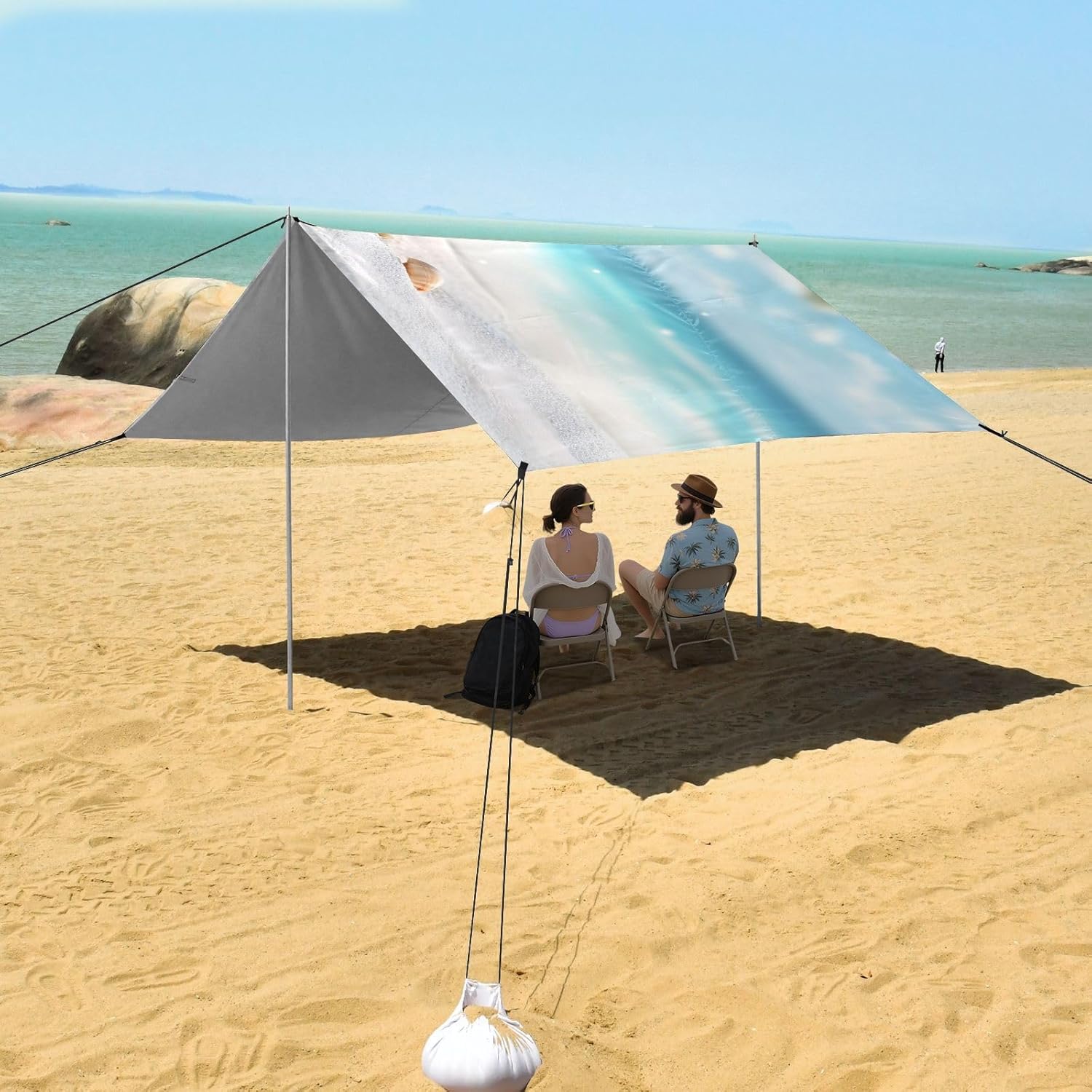 Unpack Cooling trip in 10 minutes! Our 280x320cm beach tent features silver-coated polyester oxford fabric that actively deflects heat while providing UPF 50+ protection-say goodbye to sunburns and squinting! Express your style with eye-catching, tropical-inspired prints that transform ordinary shade into a vibrant oasis. Engineered for stubborn coastal winds, the reinforced frame supports extra guy ropes alongside the included 4 refillable sandbags (use the free shovel!), 4 heavy-duty steel stakes, and 4 reinforced ropes. This high-grade anchoring system laughs at 25mph gusts while you relax. Adventure Beyond Sand: Beach lounging Lakeside camping Park picnics Fishing trips Festival hangouts Backyard "staycations