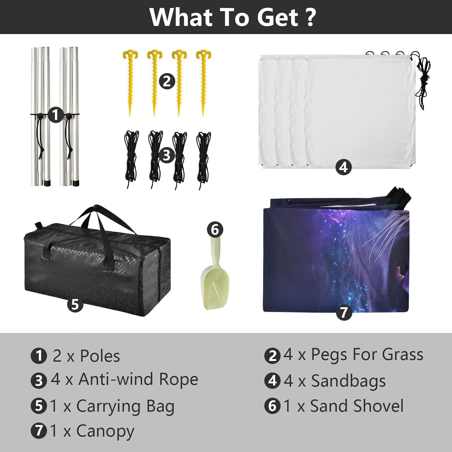 Unpack Cooling trip in 10 minutes! Our 280x320cm beach tent features silver-coated polyester oxford fabric that actively deflects heat while providing UPF 50+ protection-say goodbye to sunburns and squinting! Express your style with eye-catching, tropical-inspired prints that transform ordinary shade into a vibrant oasis. Engineered for stubborn coastal winds, the reinforced frame supports extra guy ropes alongside the included 4 refillable sandbags (use the free shovel!), 4 heavy-duty steel stakes, and 4 reinforced ropes. This high-grade anchoring system laughs at 25mph gusts while you relax. Adventure Beyond Sand: Beach lounging Lakeside camping Park picnics Fishing trips Festival hangouts Backyard "staycations