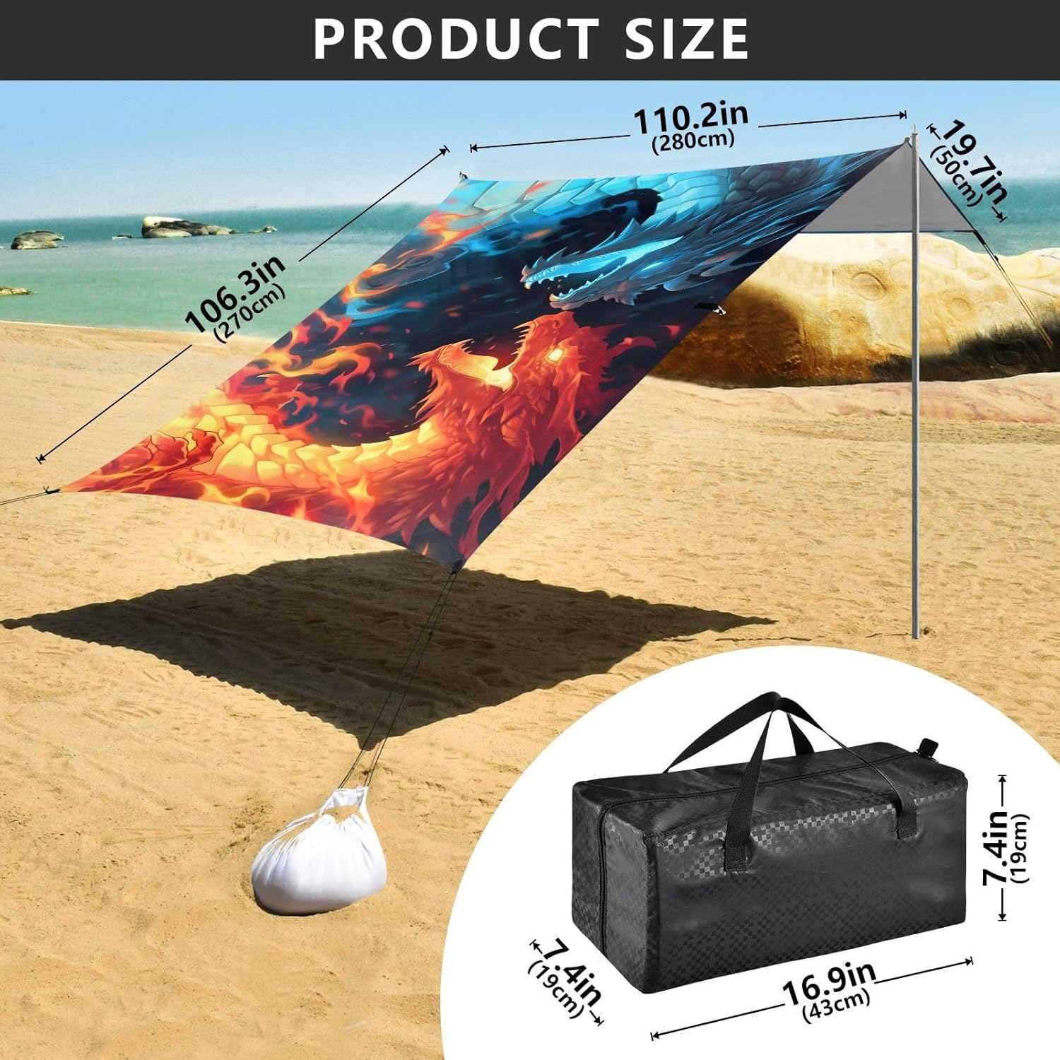 Unpack Cooling trip in 10 minutes! Our 280x320cm beach tent features silver-coated polyester oxford fabric that actively deflects heat while providing UPF 50+ protection-say goodbye to sunburns and squinting! Express your style with eye-catching, tropical-inspired prints that transform ordinary shade into a vibrant oasis. Engineered for stubborn coastal winds, the reinforced frame supports extra guy ropes alongside the included 4 refillable sandbags (use the free shovel!), 4 heavy-duty steel stakes, and 4 reinforced ropes. This high-grade anchoring system laughs at 25mph gusts while you relax. Adventure Beyond Sand: Beach lounging Lakeside camping Park picnics Fishing trips Festival hangouts Backyard "staycations