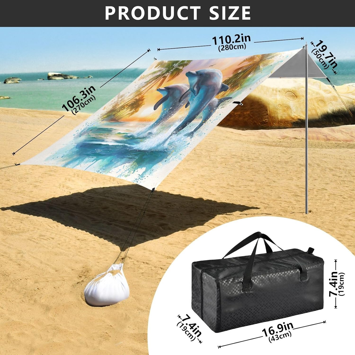 Unpack Cooling trip in 10 minutes! Our 280x320cm beach tent features silver-coated polyester oxford fabric that actively deflects heat while providing UPF 50+ protection-say goodbye to sunburns and squinting! Express your style with eye-catching, tropical-inspired prints that transform ordinary shade into a vibrant oasis. Engineered for stubborn coastal winds, the reinforced frame supports extra guy ropes alongside the included 4 refillable sandbags (use the free shovel!), 4 heavy-duty steel stakes, and 4 reinforced ropes. This high-grade anchoring system laughs at 25mph gusts while you relax. Adventure Beyond Sand: Beach lounging Lakeside camping Park picnics Fishing trips Festival hangouts Backyard "staycations