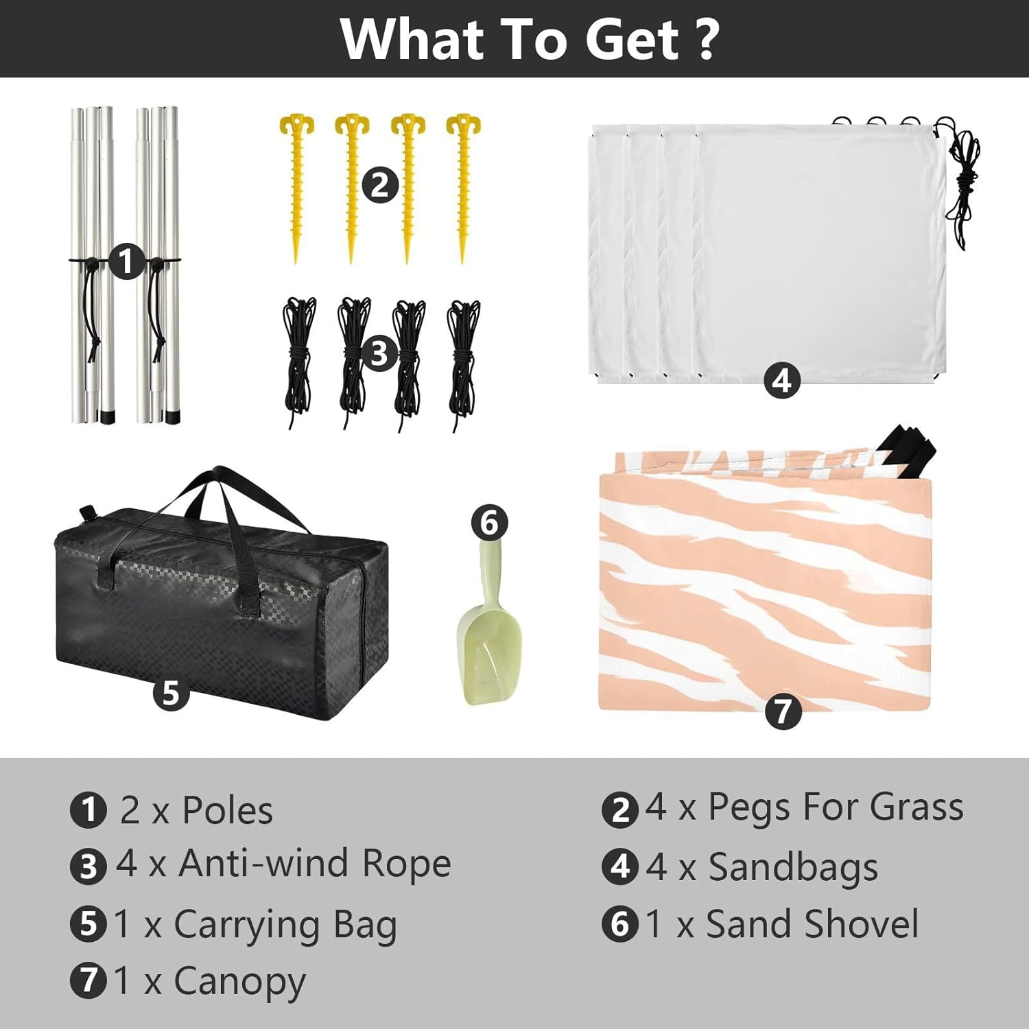 Unpack Cooling trip in 10 minutes! Our 280x320cm beach tent features silver-coated polyester oxford fabric that actively deflects heat while providing UPF 50+ protection-say goodbye to sunburns and squinting! Express your style with eye-catching, tropical-inspired prints that transform ordinary shade into a vibrant oasis. Engineered for stubborn coastal winds, the reinforced frame supports extra guy ropes alongside the included 4 refillable sandbags (use the free shovel!), 4 heavy-duty steel stakes, and 4 reinforced ropes. This high-grade anchoring system laughs at 25mph gusts while you relax. Adventure Beyond Sand: Beach lounging Lakeside camping Park picnics Fishing trips Festival hangouts Backyard "staycations