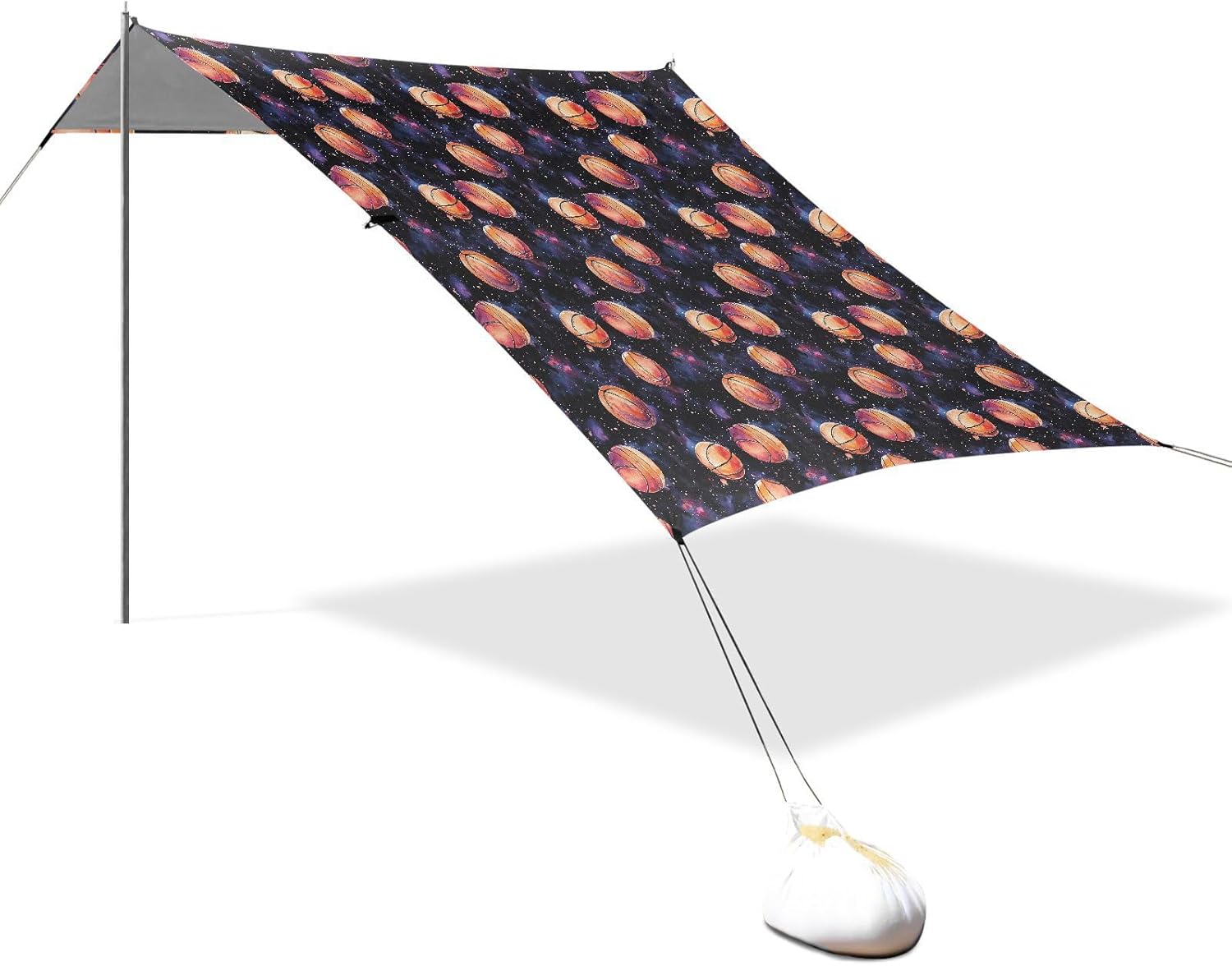 Unpack Cooling trip in 10 minutes! Our 280x320cm beach tent features silver-coated polyester oxford fabric that actively deflects heat while providing UPF 50+ protection-say goodbye to sunburns and squinting! Express your style with eye-catching, tropical-inspired prints that transform ordinary shade into a vibrant oasis. Engineered for stubborn coastal winds, the reinforced frame supports extra guy ropes alongside the included 4 refillable sandbags (use the free shovel!), 4 heavy-duty steel stakes, and 4 reinforced ropes. This high-grade anchoring system laughs at 25mph gusts while you relax. Adventure Beyond Sand: Beach lounging Lakeside camping Park picnics Fishing trips Festival hangouts Backyard "staycations