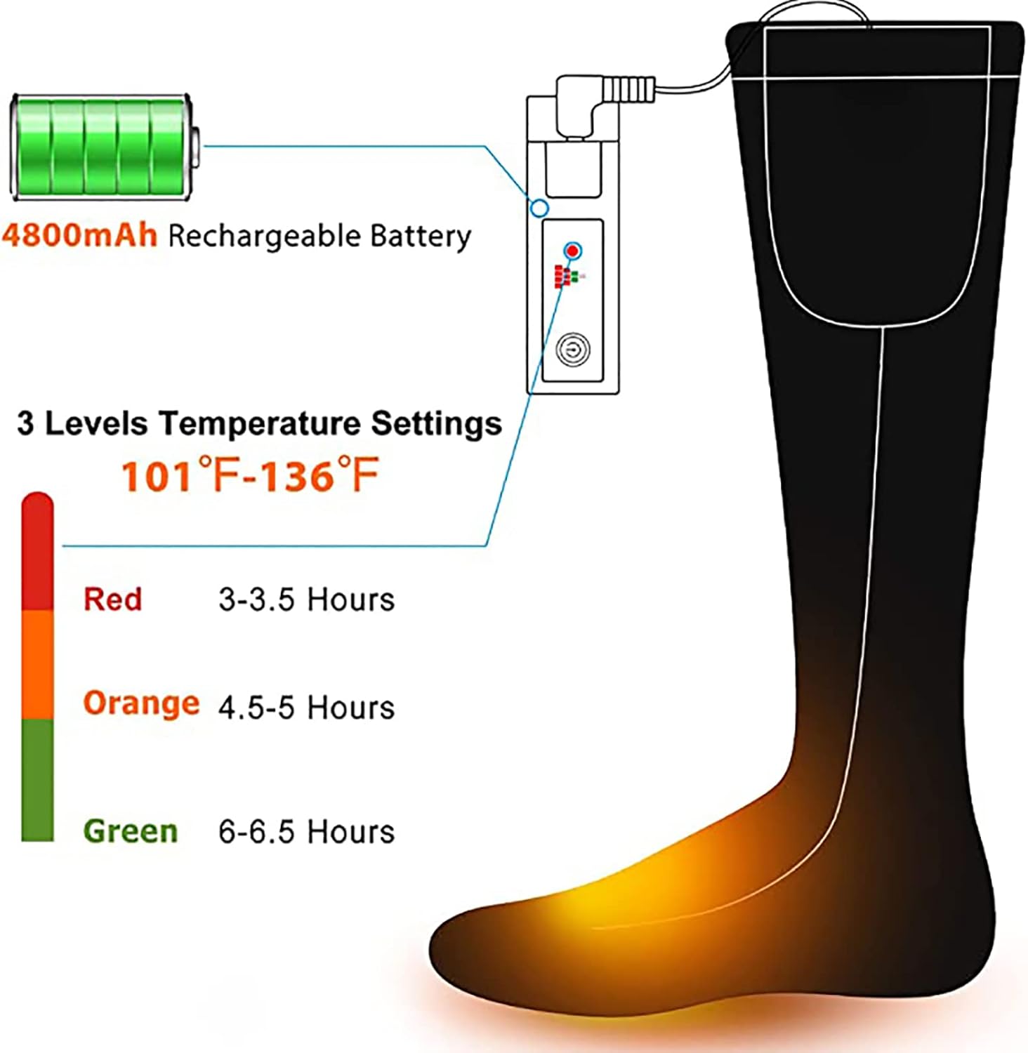 🔥Feature:Heat conduction and anti-skid.Cleverly placed heating elements use far-infrared fibers to obtain the best heating performance.It can stimulate the blood circulation of the foot, which is very suitable for people with foot arthritis and long-term cold joint stiffness.The heating element covers the entire foot.Used for outdoor winter sports, such as skiing, hiking, hunting, snowshoes, fishing, cycling, cycling and so on.🔥Specification:Color: Black,GrayMaterial: CottonSize: 22*28cmPower supply: Battery(battery included)Voltage: 3.7V/5VTemperature: 45 ~ 60 degrees🔥Packing List1*Heating socks2*Batteries🔥Note:Due to the different monitor and light effect, the actual color of the item might be slightly different from the color showed on the pictures. Thank you!Please allow 1-2cm measuring deviation due to manual measurement.