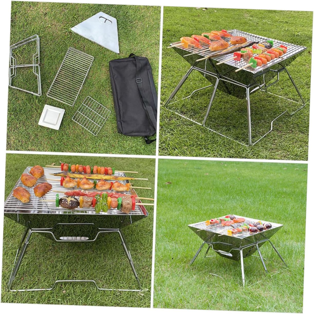 Package Include 1 x Grill 1 x Storage Bag Characteristics -Size: 31.00X31.00X22.00cm/ 12.18X12.18X8.65inch -Product Info:Portable barbecue stove -Material: Stainless steel -Color: Silver - Using stainless steel material, not easy to deform and break, a nice grill for you. - Waterproof and wear-resistant, durable and firm, it has a long serving life bbq grill. - This grill rack is foldable design, does not occupy space when not in use outdoor grilling rack. - Multi-functional and versatile, can be used as a BBQ grill, an outdoor camping grill portable camping grill. - The grill is design has good air circulation, ensuring your safety outdoor portable charcoal grill.Goods Descriptionportable barbecue plate for outdoor camping It is one of the for you.portable foldable barbecue rack Are you looking for a professional, yet BBQ grill? Are you in search of a sturdy, trustworthy BBQ grill that can be used to do multiple jobs at once? , ! Our high-class folding BBQ grill must meet your needs