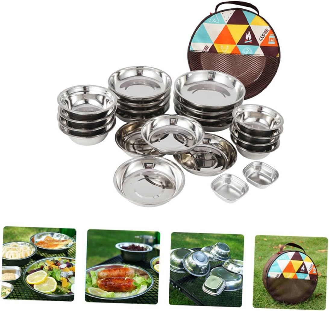 Package Include 22 x soup bowl 1 x storage bag Characteristics -Material:Stainless steel -Size: 23.00X23.00X8.00cm/9.04X9.04X3.14in -Product Info:Outdoor camping tableware set -Color:Assorted Color -Full sizes, for camping lovers, convenient to carry around. -Mesh bag, good air ventilation, easy for tableware to clean and dry Portable Camping Tableware. -Food-grade 201 stainless steel, safe and to use Outdoor Tableware. -Strong durability and corrosion resistance, . -Storage bag is convenient for storing and carrying.Goods DescriptionPortable Camping Tableware The anti-skid design can provide a firm and comfortable grip for your hand.Camping Tableware The stainless steel material provides great convenience for you, the set is lightweight and sturdy, tasteless and odorless, easy to clean and durable to use