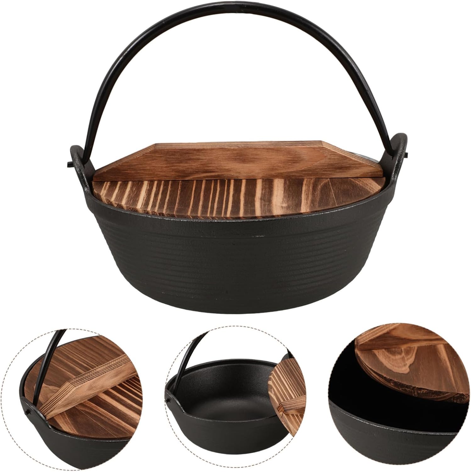 Package Include 1 x hanging pot 1 x lid Characteristics -Material:Iron camping soup pot -Size:18.00X18.00X3.50cm/7.07X7.07X1.38in cooking pot -Color:Black small iron pots -Size:21.00X19.50X9.50cm/8.25X7.66X3.73in camp fire cooking equipment -Designed for hanging, this pot offers easy storage , saving space and making it more convenient to use camping pot. -Designed with a single handle for easy maneuverability, this pot is also suitable for outdoor camping, allowing you to enjoy meals in the outdoor cast iron pots. -Its spacious interior accommodates a variety of ingredients, making it suitable for preparing meals for different numbers of people camping cooking gear. -This pot provides consistent heat, enhancing the taste and texture of your outdoor cooking pot. -The practical design adds a touch of elegance to your kitchen or campsite, making it ideal for both home and outdoor use iron pots.Goods Descriptionjapanese style hot pot Crafted from thickened iron, this pot ensures even heat distribution, making your stews and soups more flavorful and delicious.pot with lid Its unique design is not only aesthetically pleasing but also functional, suitable for family gatherings or camping adventures.cast iron pots Experience the in outdoor cooking with our Japanese-style cast iron pot