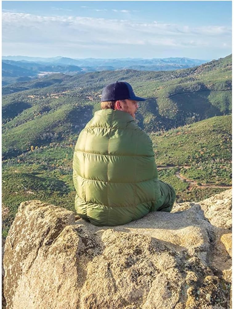 Puffy Lightweight Down Camping BlanketExperience a new level of warmth and comfort with our Mega Puffy Down Camping Blanket, the perfect companion for those chillier outdoor adventures. Tipping the scales at just 22 ounces, it effortlessly blends lightweight design with a durability that truly punches above its weight class. With its reliable DWR (durable water repellent) coating and robust nylon shell, it's not just a camping blanket. It's your trusty outdoor companion that bravely resists spills, stains, and water, ensuring you remain cozy no matter the weather. Portability? We’ve got it down to a science. Thanks to its heavy-duty clasp and stuff sack, carrying the Mega Puffy Down Camping Blanket is as easy as a walk in the park. But the real game-changer is its unrivaled warmth. The Mega Puffy sports a 20D ripstop nylon shell that stands as a staunch barrier against wind and cold. And packed with 350g of 650 Fill Power down insulation, it offers even more warmth than our standard model. You'll stay snug and toasty, even when the temperature drops to 35 degrees. When it's time to sit back and enjoy the campfire or dive into a captivating book, a few quick snaps transform your blanket into a comfortable poncho, keeping you warm while freeing up your hands. Welcome the ultimate in outdoor comfort with our Mega Puffy Down Camping Blanket. It's not just a blanket; it's a warm embrace in the great outdoors. Specification: Weight: Down Puffy: 1.7 lbs Dimensions: when compressed/flat. 77"x50" when fully puffed/lofted. Stuff sack 7”x14” Materials: Mega Puffy: 20D ripstop shell. 350g 650 Fill Power down insulation. DWR (durable water repellent) coating Features: Poncho snaps, 6 multi-function attach points (corner/center loops) Temperature Rating: 35FPackage Included: 1 x Blanket 1 x Storage and carry