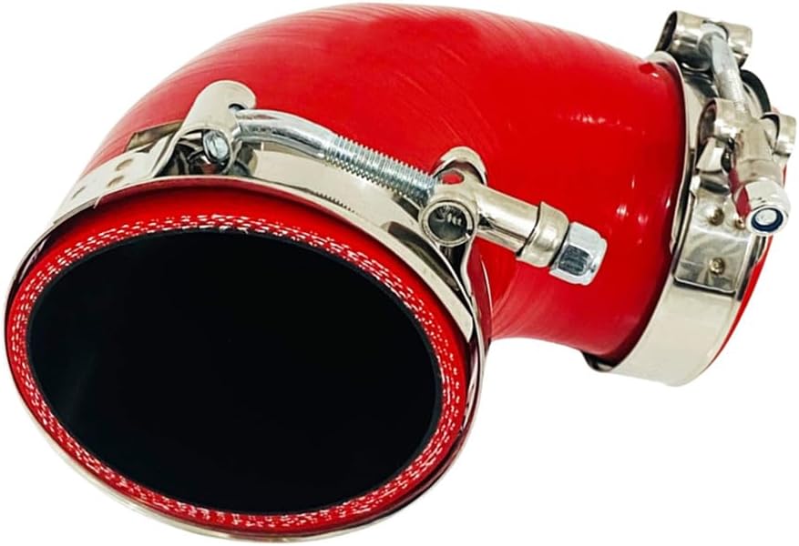AotoKoop 90 Degree Silicone Reducer Elbow Coupler Hose 3 to 3.25 in/76mm to 83mm ID-4 in Leg Length for Intake Turbo Intercooler Boot, 4-Ply Reinforced Black with 2-Pack T-Bolt Clamps Premium Performance for High-Temperature Automotive Applications Engineered to withstand extreme conditions, this 90-degree reducer silicone elbow hose is your ultimate solution for turbo intercooler & intake boot, and high-pressure fluid transfer systems. Its 4-ply nylon braided reinforcement ensures durability under 85 PSI working pressure and 245 PSI burst pressure, making it ideal for performance vehicles, race cars, and industrial machinery. Key Features & Benefits 1. Superior Material Quality: Made from high-grade silicone with UV, ozone, and water resistance for long-lasting performance. 2. High-Temperature Resistance: Operates flawlessly from -60°C to 220°C (-76°F to 428°F)—perfect for engine bays and exhaust systems. 3.Reinforced Construction: 4-ply nylon braiding enhances flexibility and prevents kinking, ensuring smooth fluid flow. 4. Precision Fit: 3 to 3.25 in/3 to 3-1/2 in inner diameter (76mm to 83mm) and 4-inch leg length (102mm) design for seamless integration with intake hoses and intercooler pipes. 5. Complete Package: Includes 2-pack T-bolt clamps for secure installation, eliminating the need for additional purchases. Compatibility & Applications 1. Universal Fit: Works with most Turbocharging of the car engine, connected to intercooler hoses, intake systems, and turbocharger pipes. 2.Ideal for: Cars, trucks, motorcycles, marine engines, and industrial equipment. 3.Color Options: Classic black finish blends seamlessly with any engine compartment.