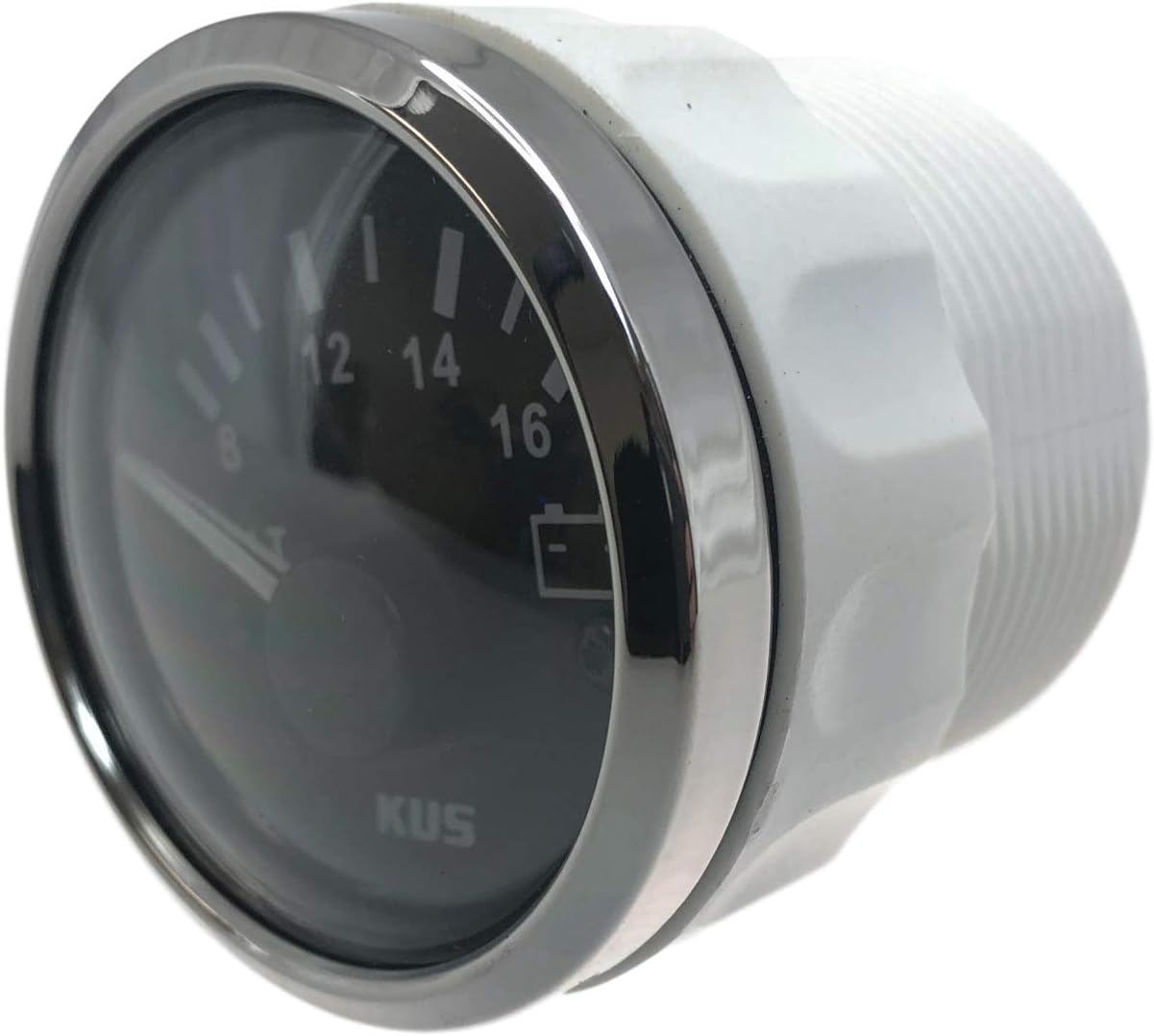 This is a stylish and elegant voltmeter gauge that provides a clear display of voltage. Voltmeter is designed for durability and compatible with nearly all kinds of electrical system. Bezel Material: 316 Stainless Steel, reinforced convex cured glass. This 8-16V (indicating range) system can be connected to red and yellow backlight. Installation Dimension: Φ52mm (2” Diameter), screw-mount style installation. 100% Waterproof and anti-fogging protection. Protection grade is IP67. Operation temperature: -40°C ~ +85°C. Installation: lock the gauge to baseboard directly by hand. Connector: multi-plugs socket connection. Item Number: PKY13000.