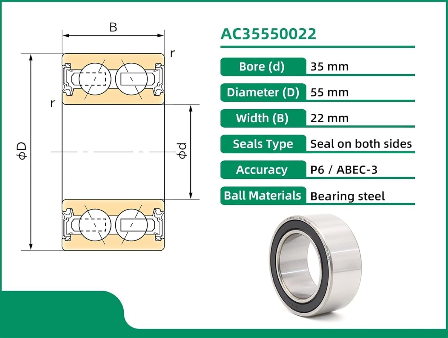 Angular Contact BearingsAir Conditioner A/C Compressor Clutch Pulley BearingAC3555002235BD5522 35x55x22Double-row Angular Contact Ball Bearingsfor Car Air Conditioning Magnetic Clutch